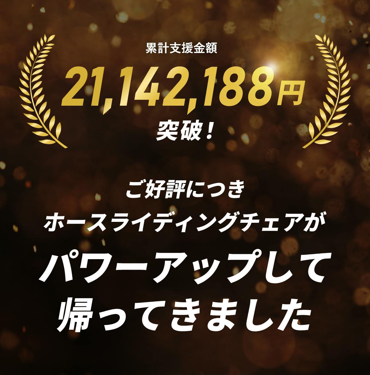 2025/12/06 21:00サポーターの皆様こんばんは!いつも応援いただきありがとうございます。ご好評につき、ホースライディングチェアはCANPFIREにて公開を開始しました!開始39分で100万円突破!現在282万円へ突破いたしました。みなさまのお力添えのおかげです。本当にありがとうございます。プロジェクトの開始を見逃した方もご安心ください。以前ご支援いただいたお客様には10%クーポンをご案内いたします。例えば、【早割15%OFF】 33,830円→クーポン適用でさらに10%OFF!↓10%OFFクーポン 12月6日限定↓https://camp-fire.jp/projects/906990/view?ctoken=50lCYXRIWuSdvkMDクーポン適用は本日12月6日までとなっております。この機会をお見逃しなく♪『ホースライディングチェア』プロジェクト2025 スタッフ一同 もっと見る