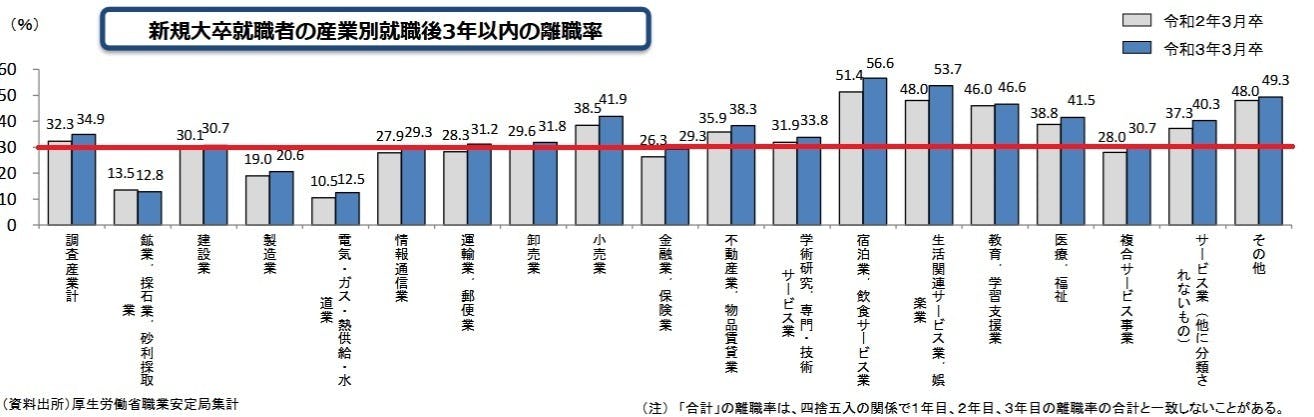 日本では新卒の約3人に1人が3年以内に離職しています。