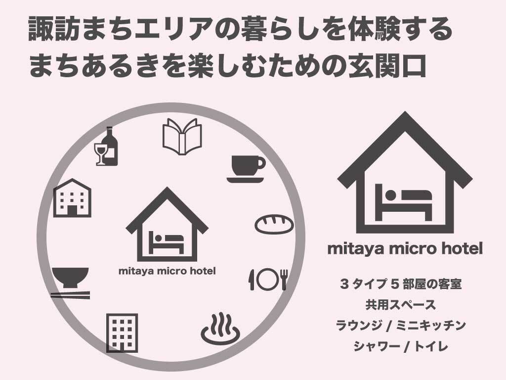 “mitaya micro hotel”は諏訪のまちあるきを楽しむための玄関口。半径200m、徒歩3分圏内で顔の見えるお店が多数あり、朝から夜までまちを楽しめるとっておきのロケーションが特徴の一つ。古材古道具を扱う「ReBuilding Center JAPAN(=以後、リビセン )」をはじめ、パン屋、古書店、カフェ、雑貨屋、食堂、クラフトビール醸造所などここ数年で開業したお店もたくさんあり、今後も新たなお店が続々とOPENする予定です。まちあるきだけでも1泊2日では巡りきれませんが、諏訪湖をはじめとした信州の自然や温泉、歴史ある酒蔵巡りなど、訪れるお客様に合わせて地域の魅力を編集し、おすすめのお店やスポットを紹介できればと思います。