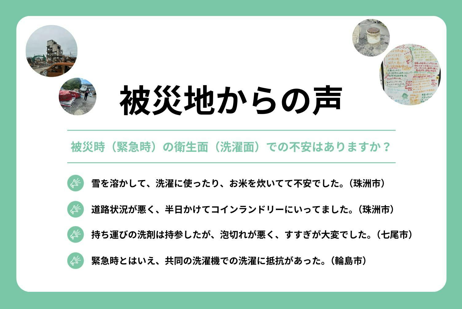 今回は石川県能登半島地震をきっかけに被災地の皆様から頂いた声をもとに開発した洗剤になります。