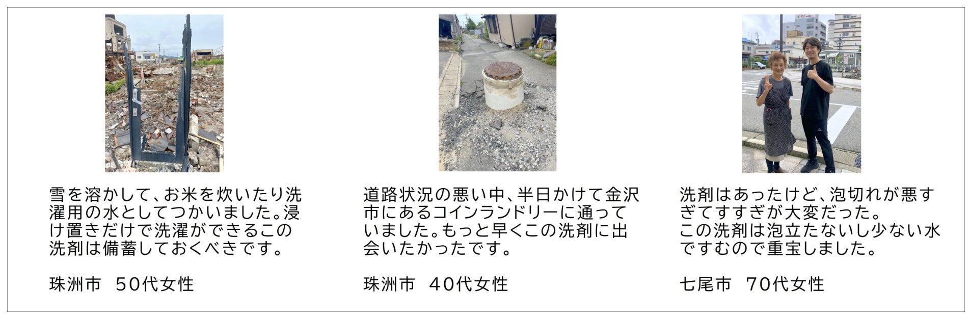 今回は石川県能登半島地震をきっかけに被災地の皆様から頂いた声をもとに開発した洗剤になります。
