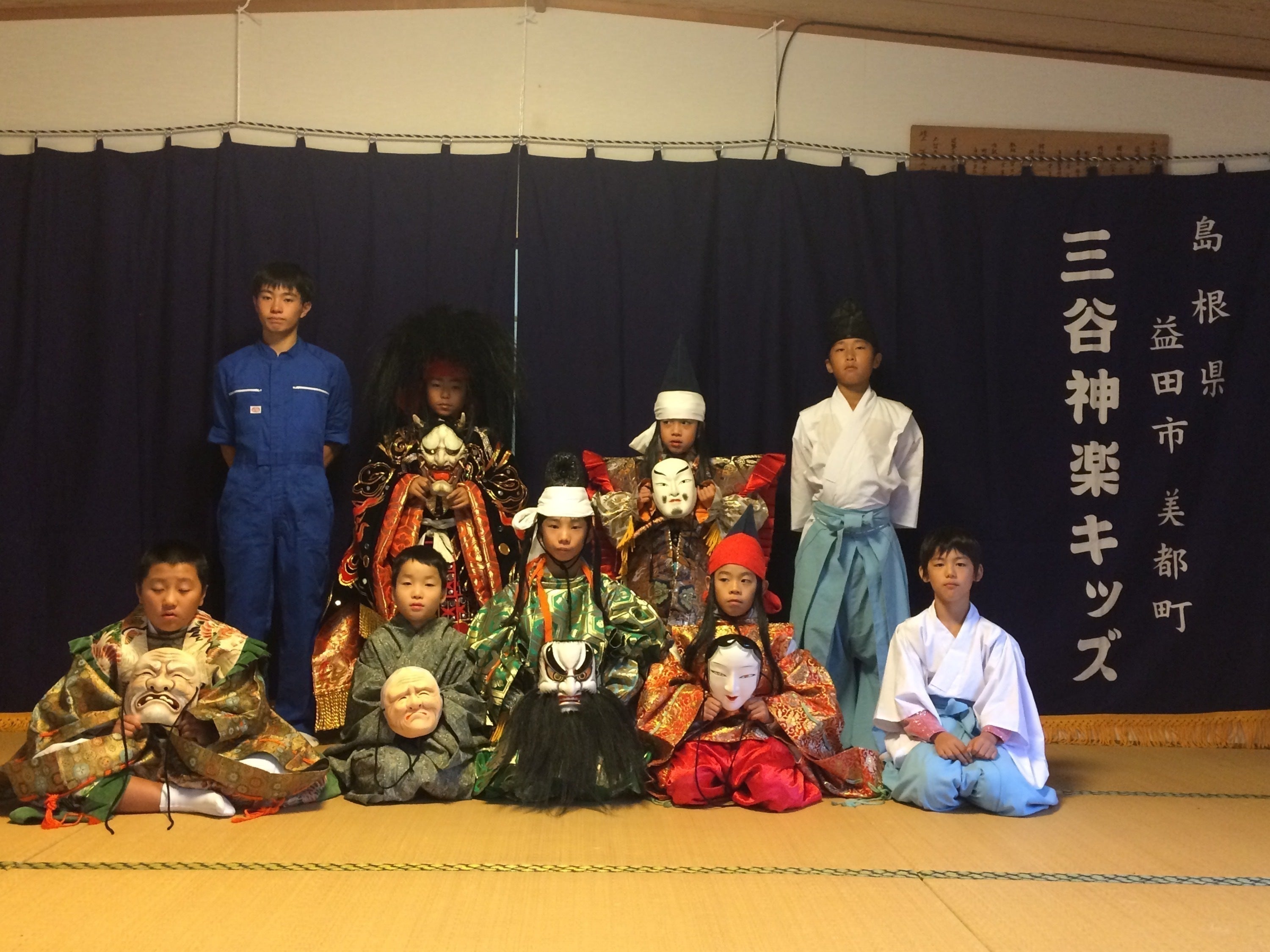 私たちは島根県益田市美都町で石見神楽を継承している三谷神楽キッズという団体です。私たちは地域の文化を守り、次世代へと繋げるために、子ども達が神楽を楽しみ、神楽を通して礼節を学べる環境を整えることを目指しています。