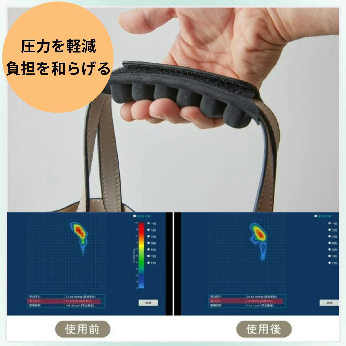 立体エアセルが柔らかくフィットし、腕や手にかかる圧力を軽減します。