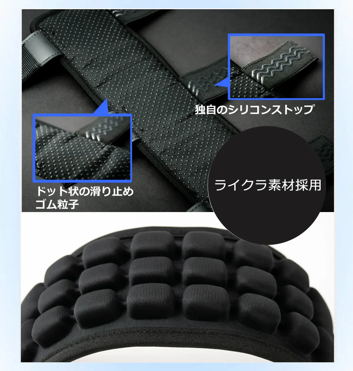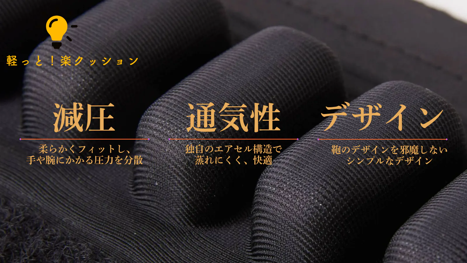 エアセルに空間があるため、触れる面に隙間が出来て蒸れにくく、ずっと快適さをキープします。