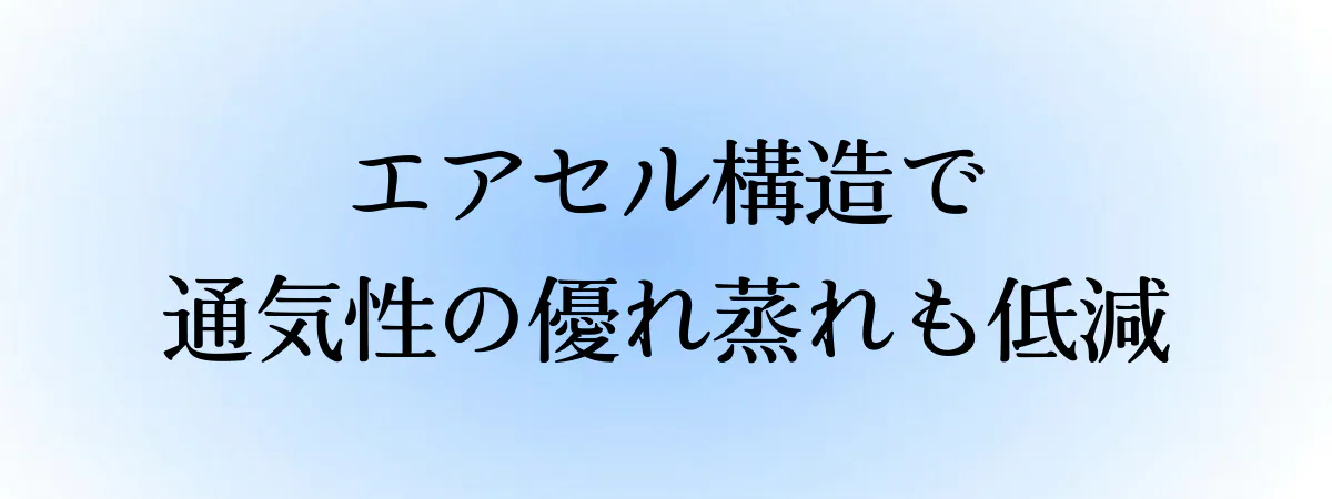 独自のエアセル構造で通気性に優れ蒸れも低減。暑い時期でも快適にご使用いただけます。
