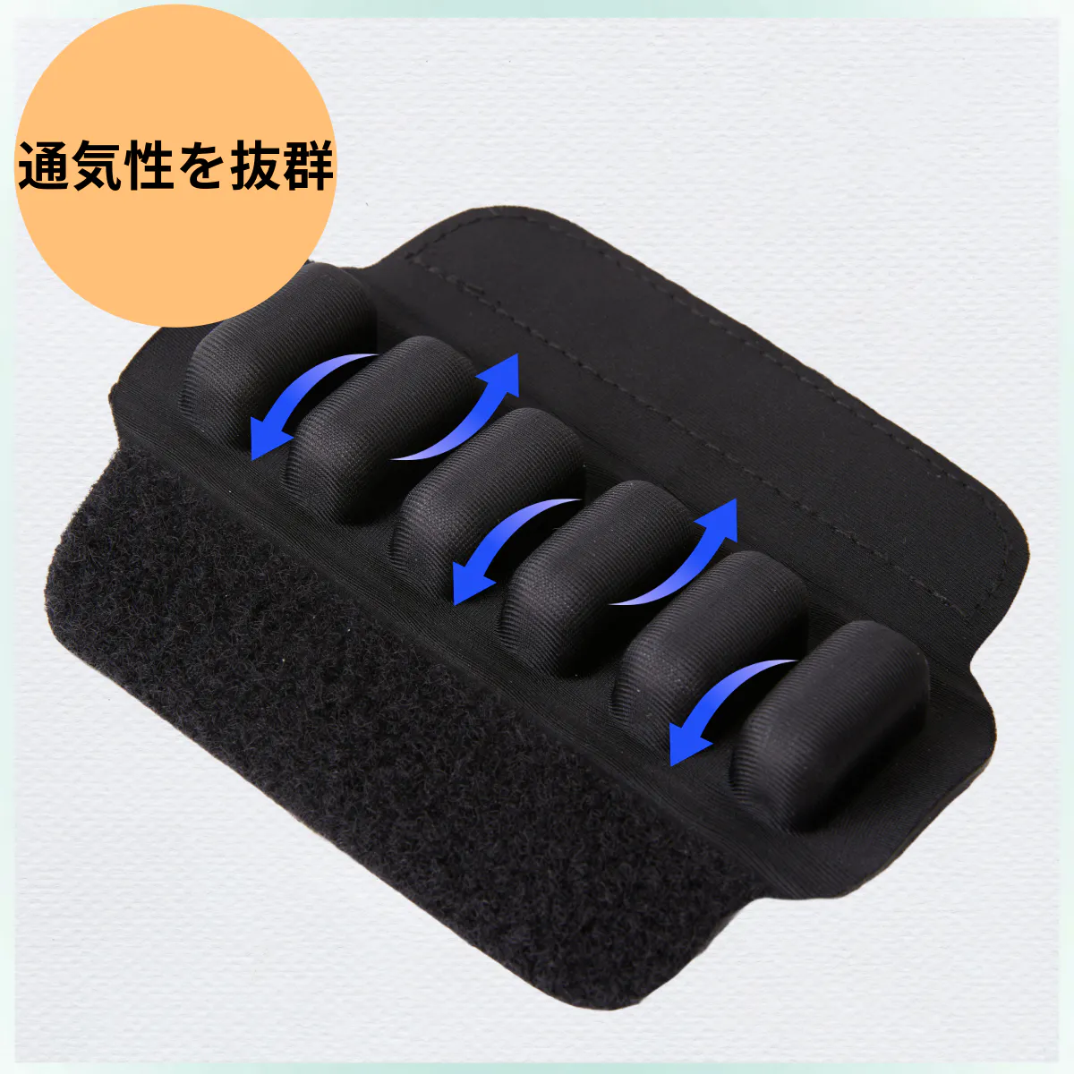 立体エアセルが柔らかくフィットし、腕や手にかかる圧力を軽減します。