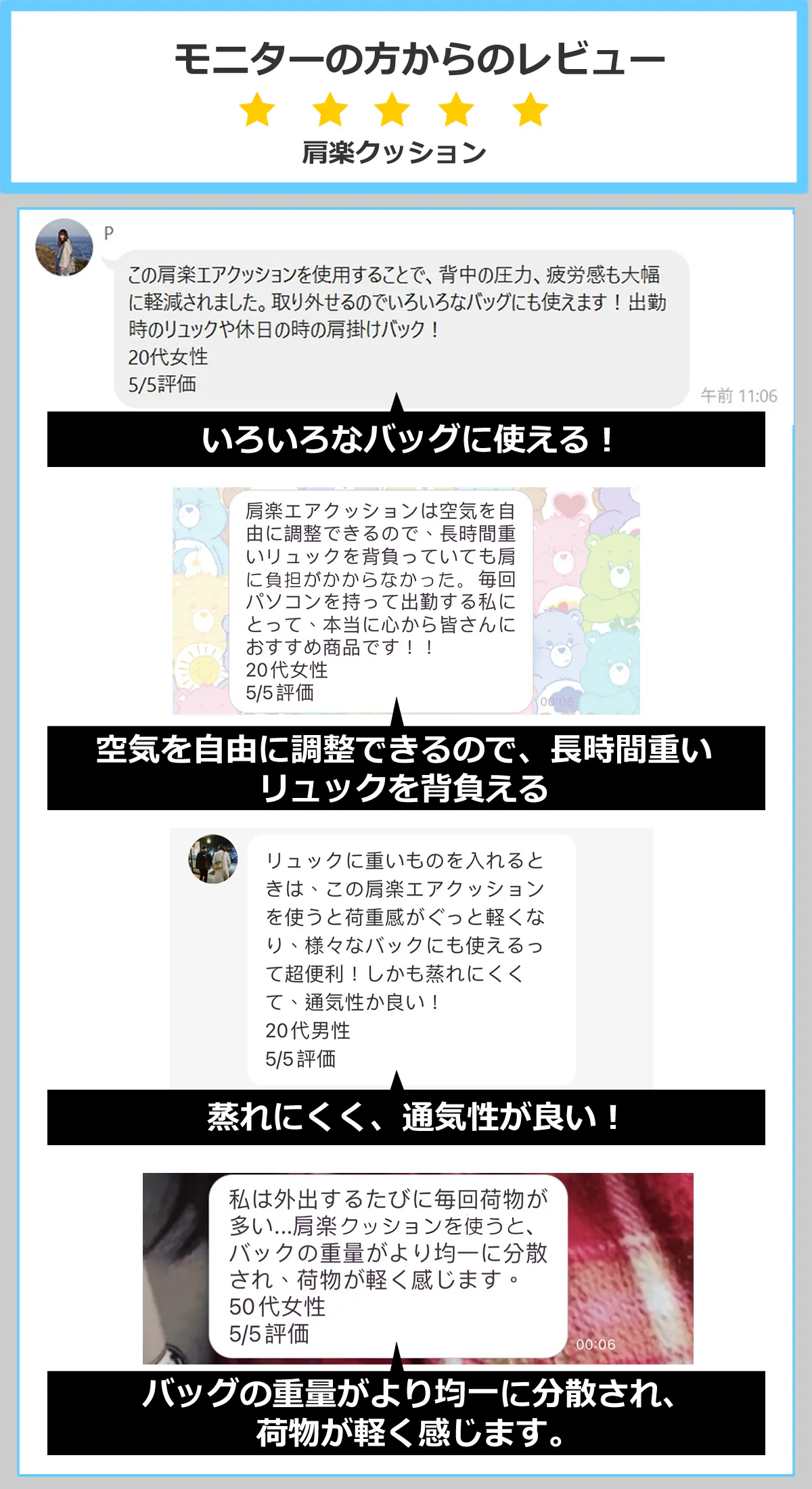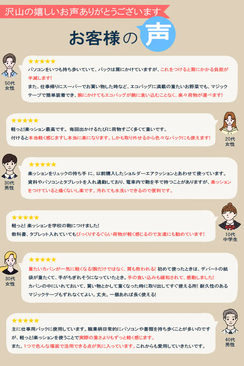 2025/06/30 18:00皆様、こんにちは!毎日の通勤や買い物で「肩がつらい」「腕が痛い」と感じたことはありませんか?そんな日常の悩みに応える2つのアイテムが誕生しました!「肩楽クッション」:バッグの重さを分散し、肩の負担を軽減!「軽っと楽クッション」:買い物袋の食い込みを防ぎ、手や腕にやさしい!どちらもエアクッションの技術で、身体も気持ちも軽やかに引き続き応援よろしくお願いいたします! もっと見る