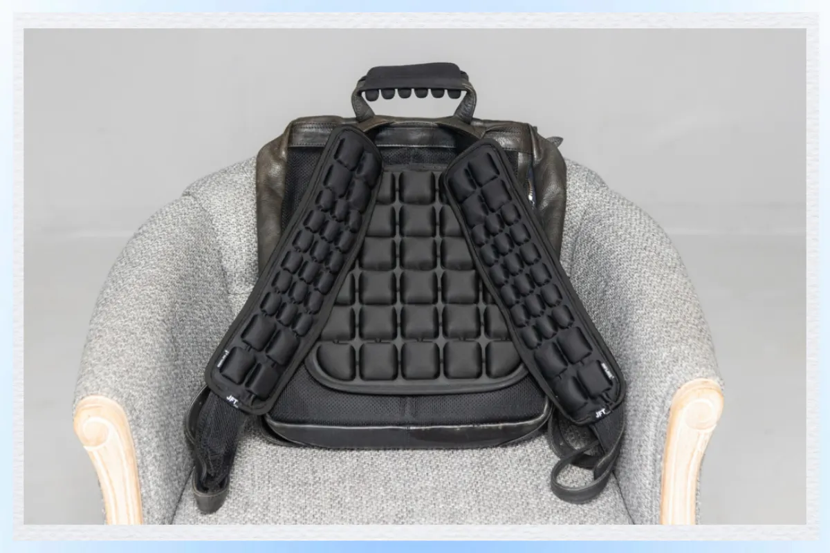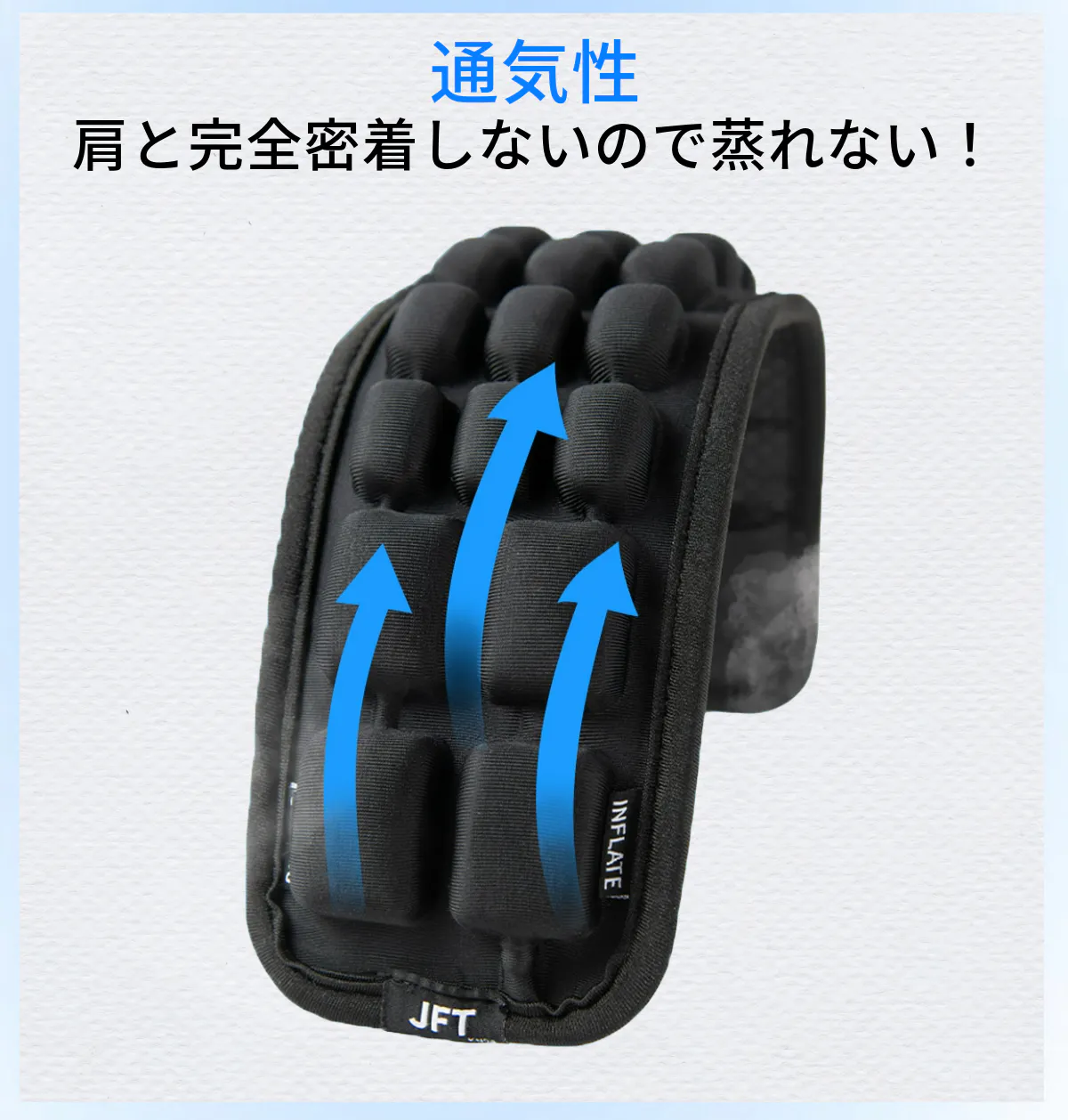 エアセルの空気を調整できる新しい仕様を採用!押すだけでいつでもどこでも簡単に空気の量を調整できます。好みに合わせたサポートが可能で、肩の負担を大幅に軽減します。