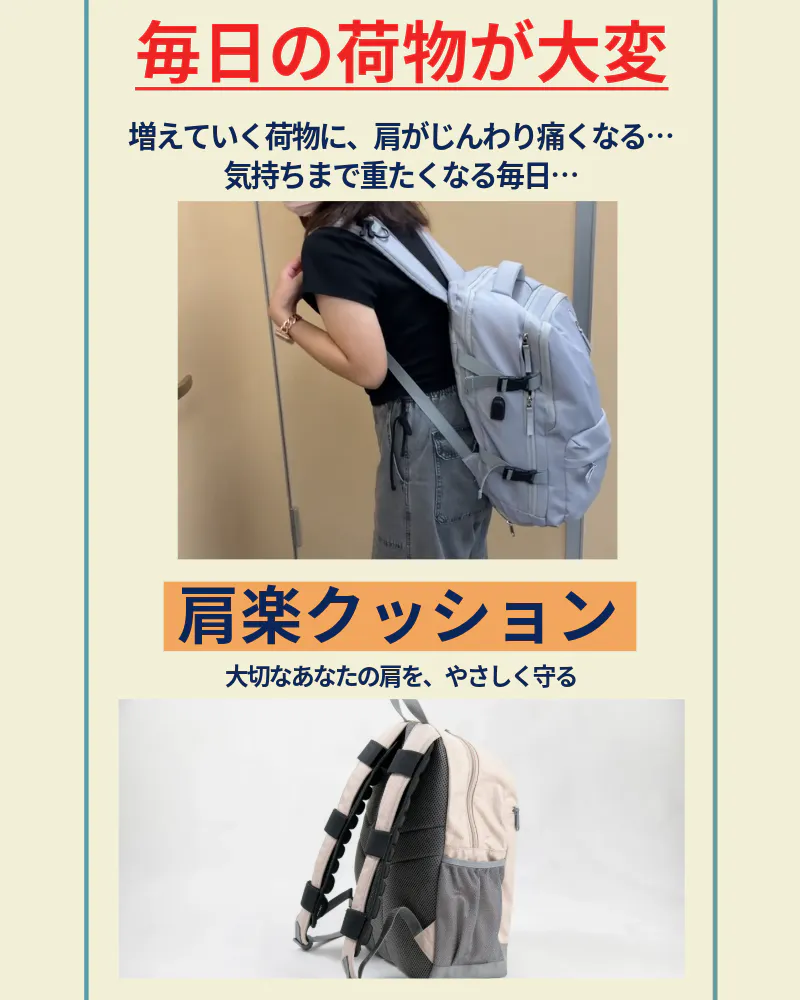 2025/06/29 18:00皆様、こんにちは!毎日の通勤・買い物で肩や腕に負担を感じていませんか?そんなお悩みに寄り添う2つの商品が登場!肩楽クッション:重いバッグの肩への負担をやわらげ、毎日を快適に。軽っと楽クッション:買い物袋の持ち手による食い込みを軽減し、手や腕を優しくサポート。どちらもエアクッションの力で、体の負担を軽く、気分も軽やかにこのプロジェクト残り1日!是非、応援よろしくお願いいたします! もっと見る