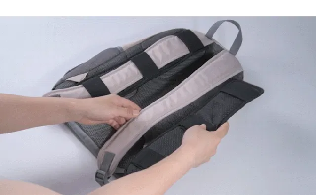 付属している丸テープをリュック側に貼るだけで、バックエアクッションが装着可能です。