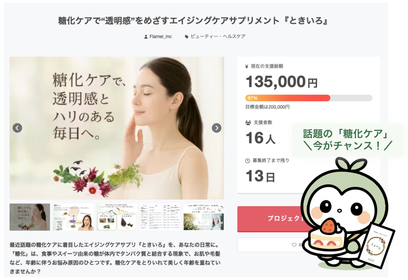 プロジェクト開始から2週間で、目標支援額の67%に到達しております。