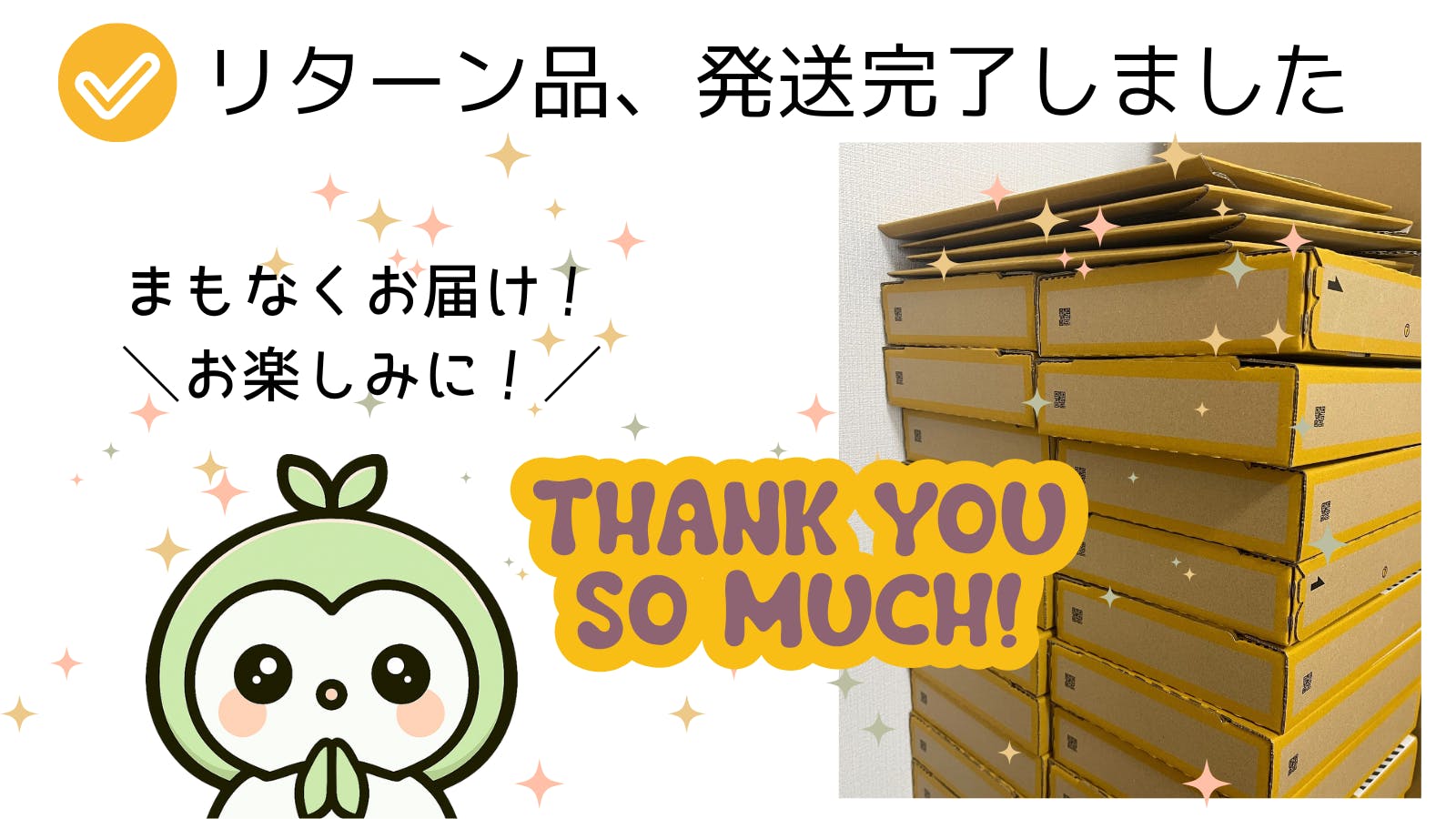 本日までに、すべてのリターン品の発送が無事完了しましたことをご報告いたします。