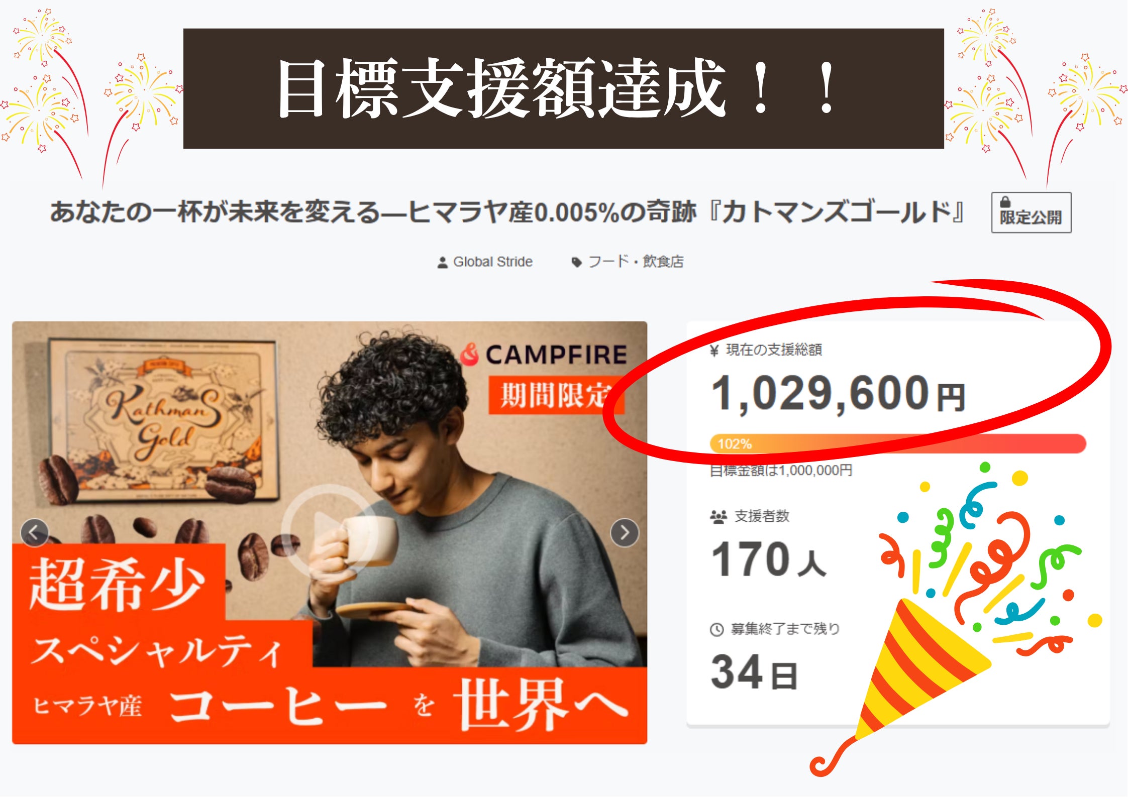 ご支援100%達成のご報告について
