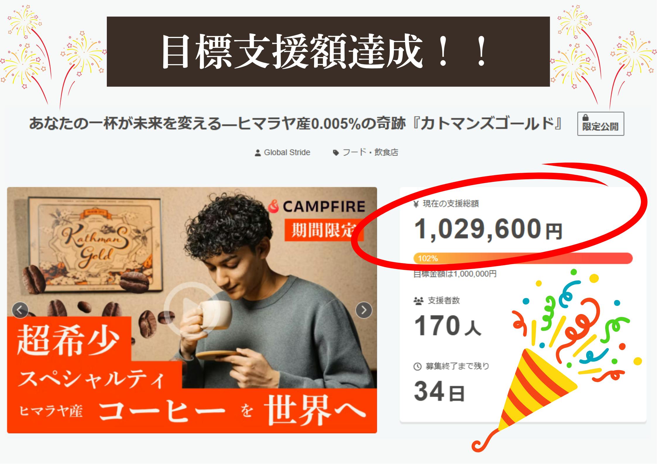 2025/07/07 14:34このたび、『Kathmans Gold(カトマンズゴールド)』は、皆さまの温かいご支援のおかげで目標金額を達成することができました。プロジェクト開始から多くの方々が共感の声を寄せてくださり、ページをシェアしてくださったり、「応援しています」というメッセージとともにご支援を届けてくださったり、ひとつひとつの想いが、ここまでの原動力になりました。心より感謝申し上げます。ネパールの一杯を、もっと多くの人へ届けたいプロジェクトの期間はまだ残っています。このコーヒーをもっと多くの方に知っていただけるよう、引き続きイベント出展や発信を続けていきます。ご家族やご友人、お知り合いなど、「コーヒーが好き」「エシカルな取り組みに関心がある」という方がいらっしゃいましたら、ぜひこのプロジェクトをご紹介いただけたら嬉しいです。皆さまの“もうひと声”が、さらに多くの人に「カトマンズゴールド」を届ける大きな一歩になります。リターンの準備についてご支援いただいた皆さまへのリターンは、現在焙煎・パッキング・発送に向けて準備を進めております。7月中旬から順次発送を予定しておりますので、楽しみにお待ちいただけましたら幸いです。活動の進捗は、引き続きこちらの活動報告でお知らせしてまいります。あらためて、温かなご支援と応援を、本当にありがとうございます。そして、これからもどうぞよろしくお願いいたします。 もっと見る