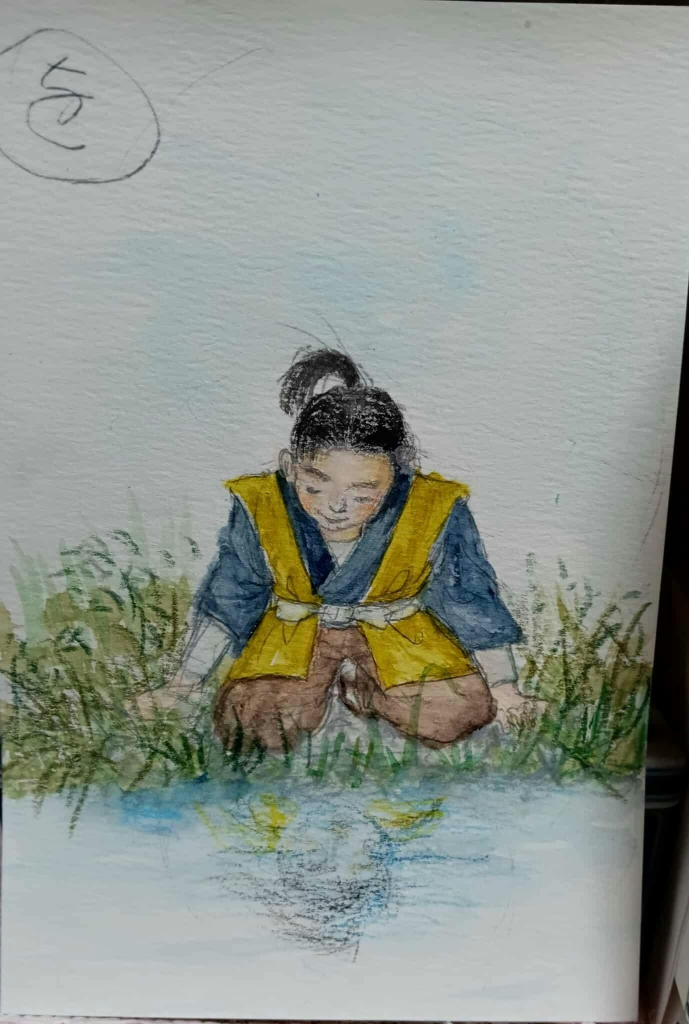 野口さんが描いてくださったこの絵は、水に自分を映して、内面を見つめているという絵です。