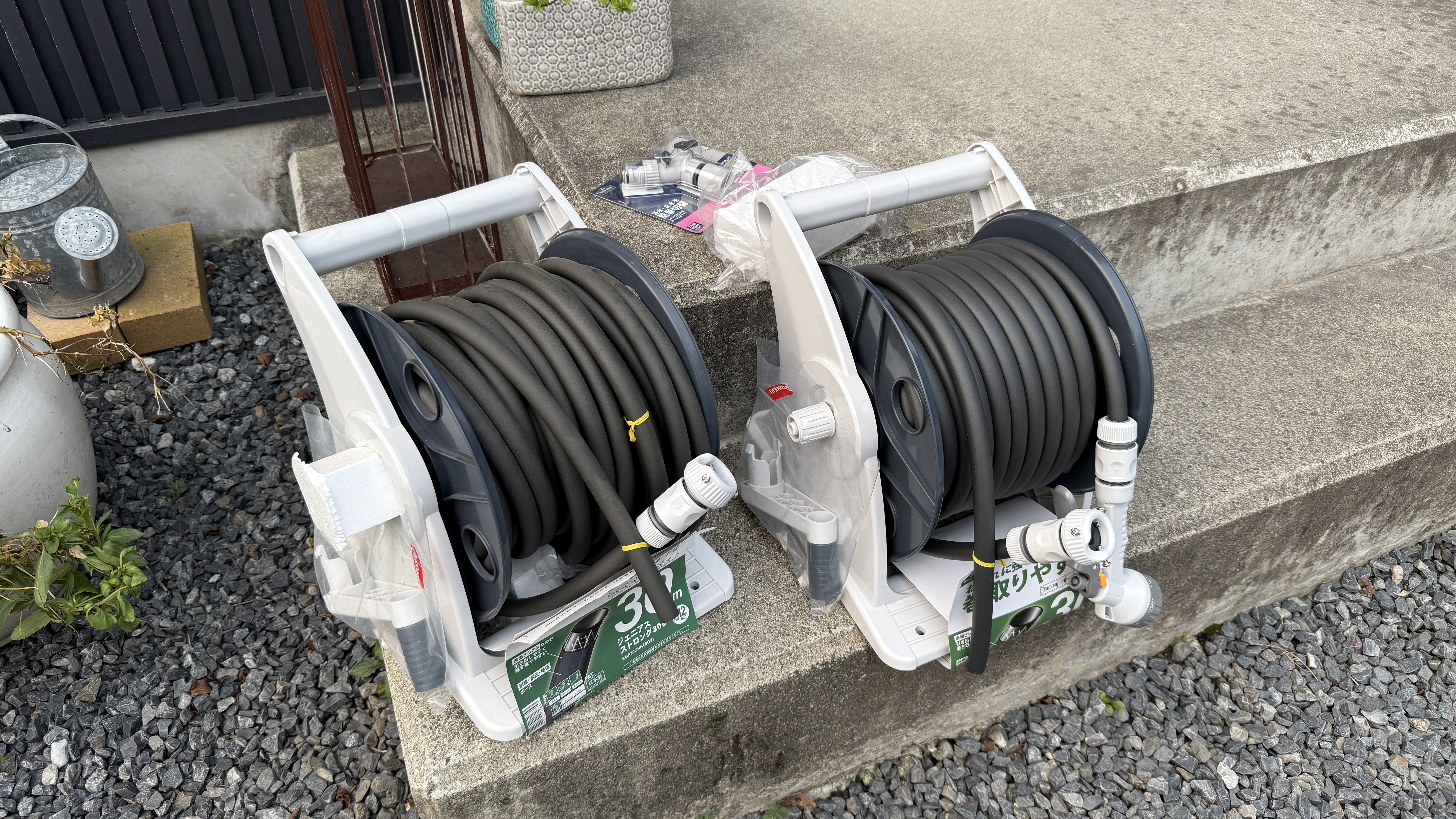 ホースだけでは水量が足りず、川からくみ上げて還元