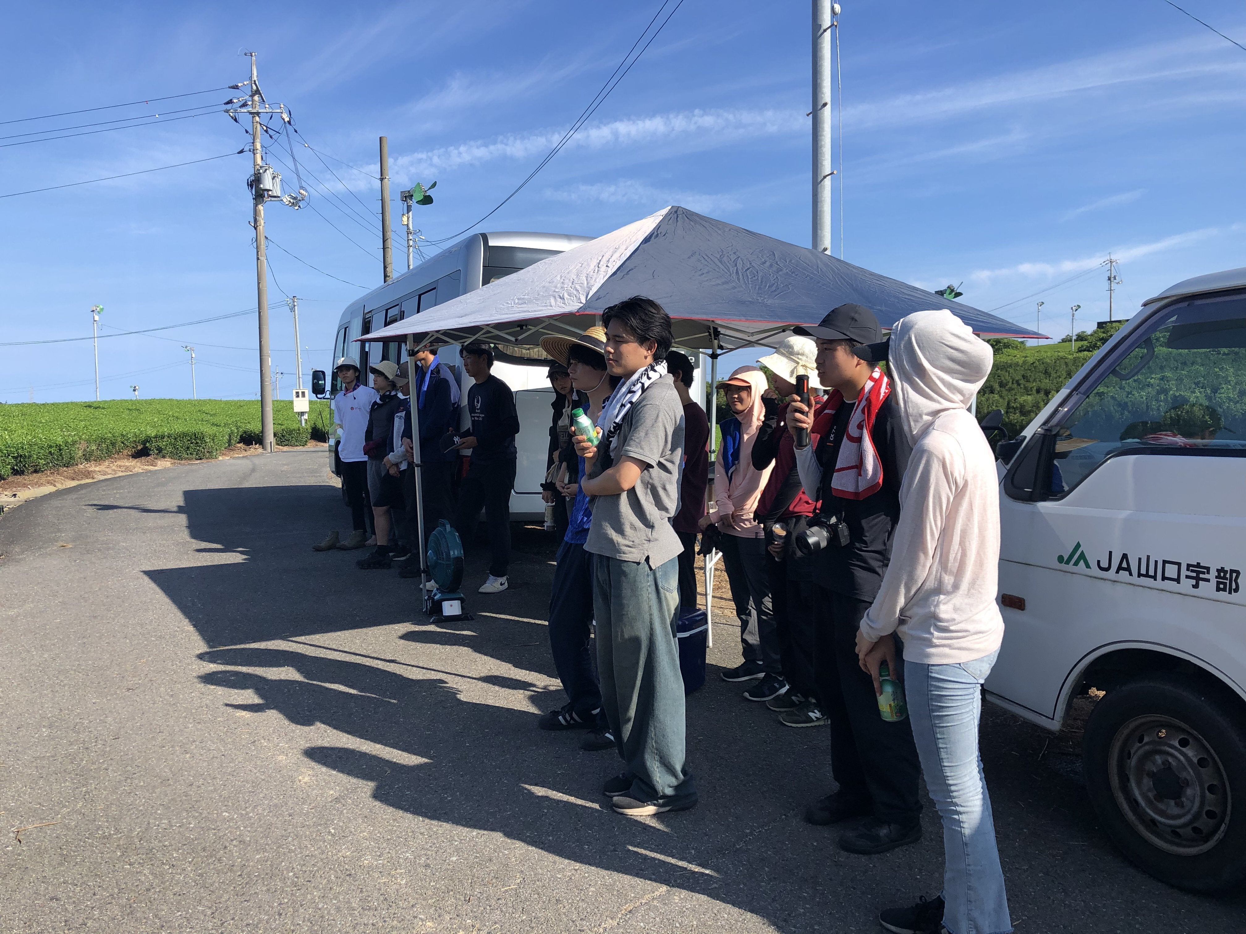 本日は11時半に農園を出発し宇部市の藤河内茶園へ☆山口県美祢農林事務所、宇部市農業振興課、JA山口様と一緒に宇部茶園の農作業お手伝いに取組みました!