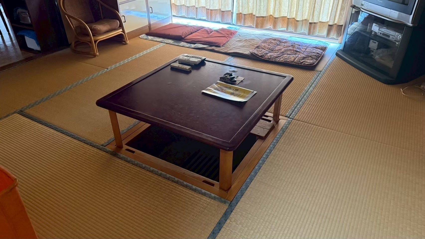 平屋の居間には掘りごたつや落ち着いた空間が広がります。