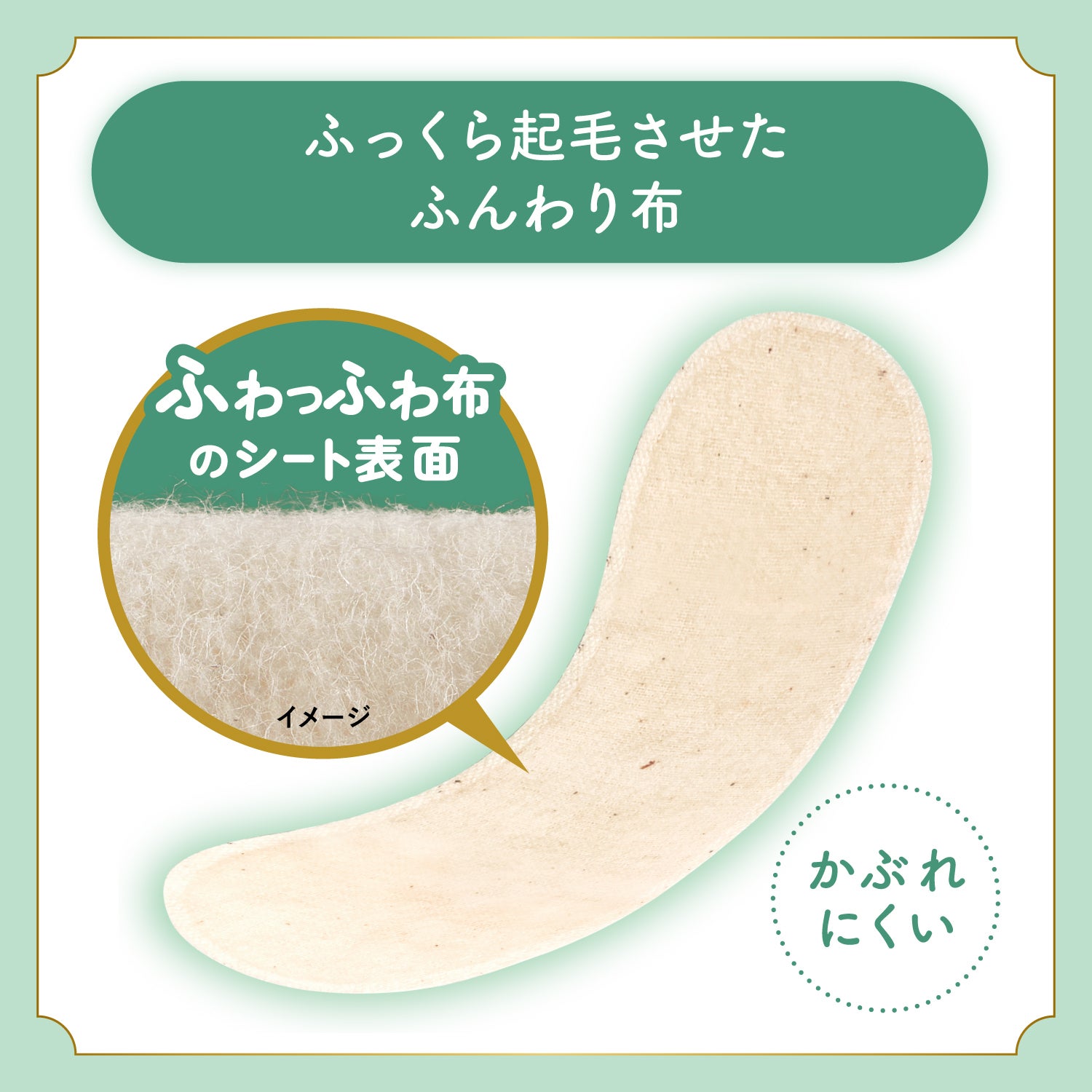 「サラサーティコットン100 布製おりものシート」の肌に直接触れる表面部分は、無漂白の天然コットン100%。まるでショーツのような肌触りを実現するために、コットン生地を起毛させてふわっと感を生み出しました。そのため、肌とおりものシートの間で生まれる摩擦を軽減することができました。