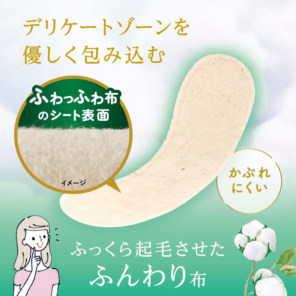 「サラサーティコットン100 布製おりものシート」は「ふわふわで気持ちのよい肌触り」と「まるでつけていない感覚」が特徴です。
