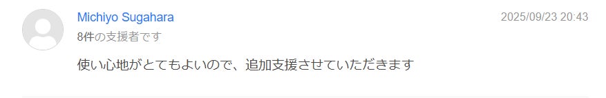 いただいた貴重なご感想を励みに、プロジェクトのゴールまで全力で走り抜きます。