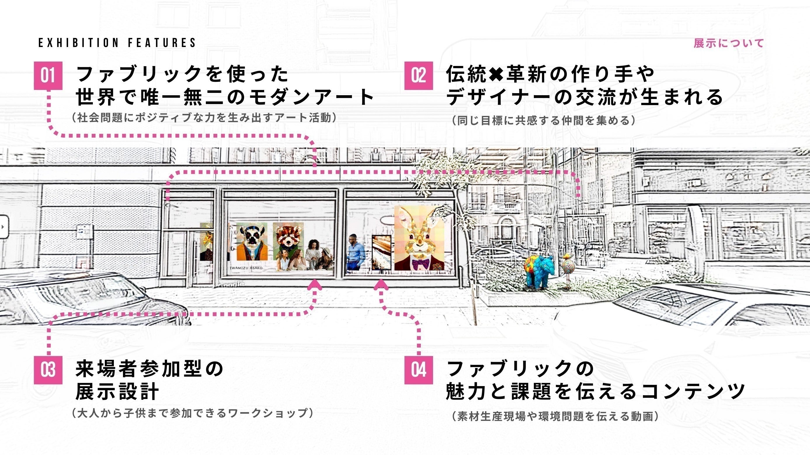現在、日本の伝統的な織物メーカーやイギリスのインテリアブランド、イタリアの伝統織物メーカー、フランスのファッションブランドなどが今回の展示に向けて素材を提供してくれる予定です。さらに日本やヨーロッパのファブリックを募集しています。