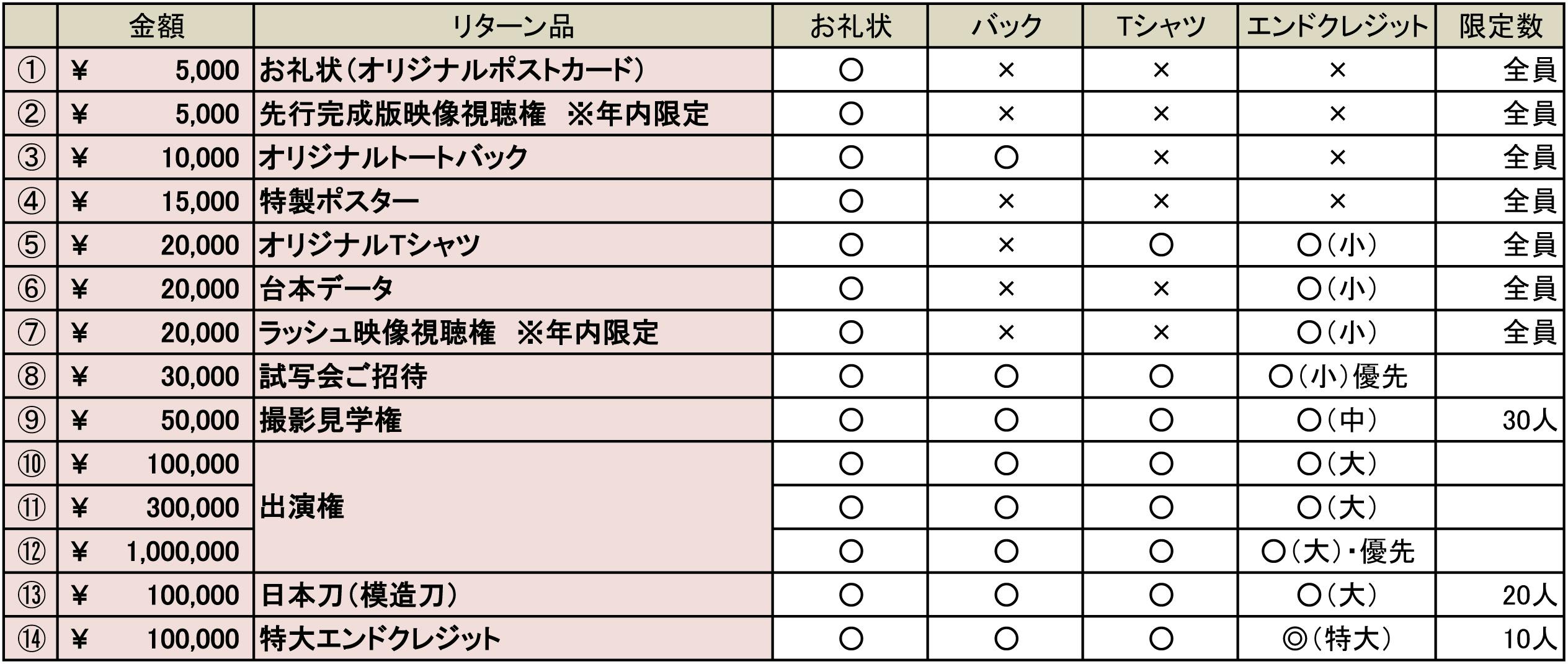 〈出演権〉 注)現在、撮影は終了しております。⑭を代替えとさせていただきますので、ご希望の方は⑭〈特大クレジット権〉からご支援願います。
