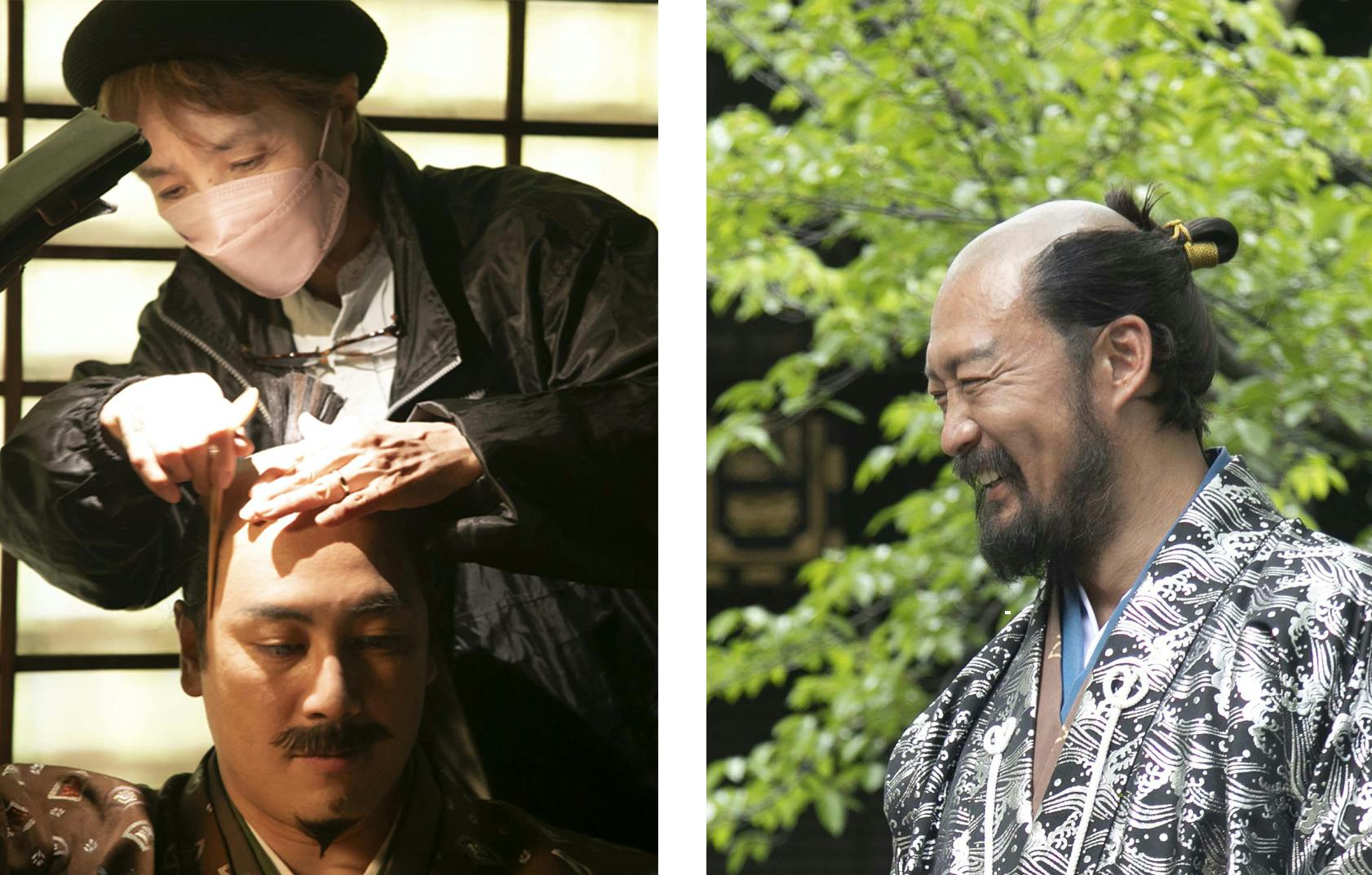 前作『信虎』に引き続き、江川悦子(えがわ えつこ)さんがカツラ・特殊メイクを担当します。『影武者』『乱』など黒澤映画を彷彿とさせる深い剃(そ)り込みの戦国の月代(さかやき)・髷(まげ)を再現します。また、『信虎』では、従来の羽二重(はぶたえ)からラテックスに変えることによって、よりリアルな肌の質感を再現することに成功し、芸術選奨 文部科学大臣賞(映画部門/『マスカレード・ナイト』と共に)を受賞しました。