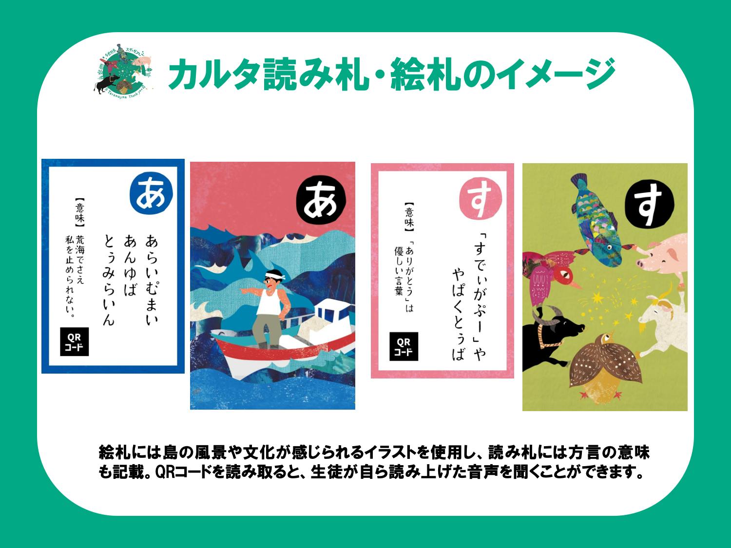 言葉が息づく場所には、きっと、心もつながる。だからこそ、私たちは“遊びながら学べる”カルタとスタンプで、多良間の方言をもっと身近なものにしたいと願っています。