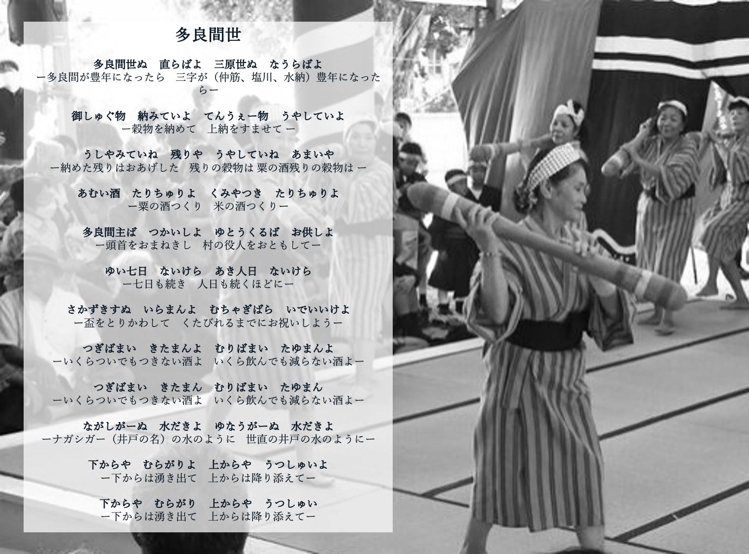 しかし今、歌の意味をことばとして理解できる人は少なくなり、途絶えてしまう危機にあります。