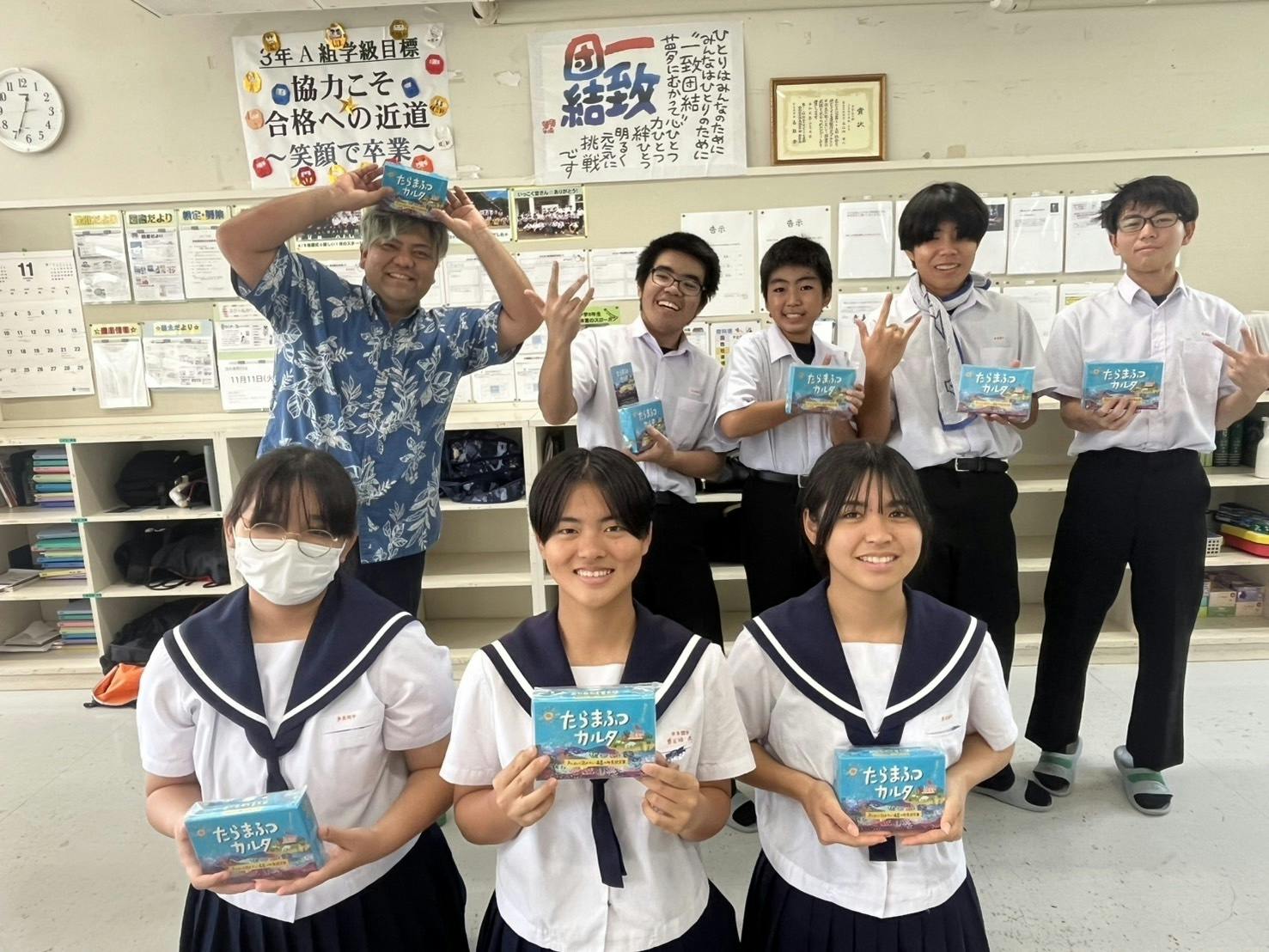 2025/12/19 12:00大変お待たせいたしました!ステッカー、たらまふつカルタをはじめとしたリターン品の発送作業を開始いたしました。現在、ひとつひとつ確認しながら、心を込めて梱包・発送を進めております。順次発送となりますので、お届けまで少しお時間をいただく場合がございますが、1月中にはすべての発送が完了する予定です。長らくお待ちいただき、本当にありがとうございます。皆さまのご支援のおかげで、「たらまふつカルタ」は島の子どもたちと一緒につくりあげた、大切な形として完成しました。お手元に届くまで、今しばらくお待ちください。到着後は、ぜひ手に取って、多良間島のことばや空気を感じていただけたら嬉しく思います。引き続き、活動の様子はご報告してまいります。今後とも温かく見守っていただけますと幸いです。 もっと見る多良間中学校3年生にたらまふつカルタを 贈呈してきました!