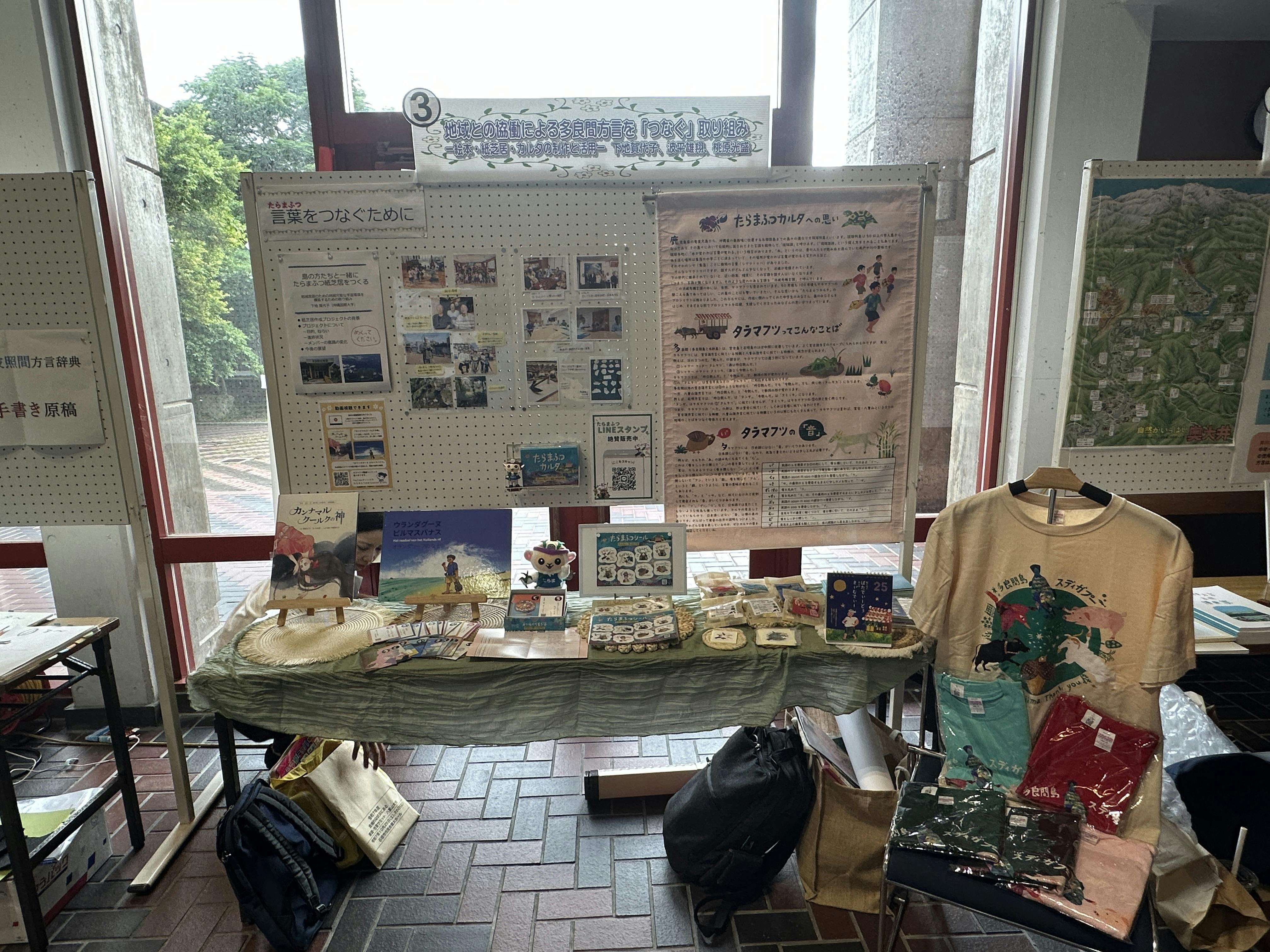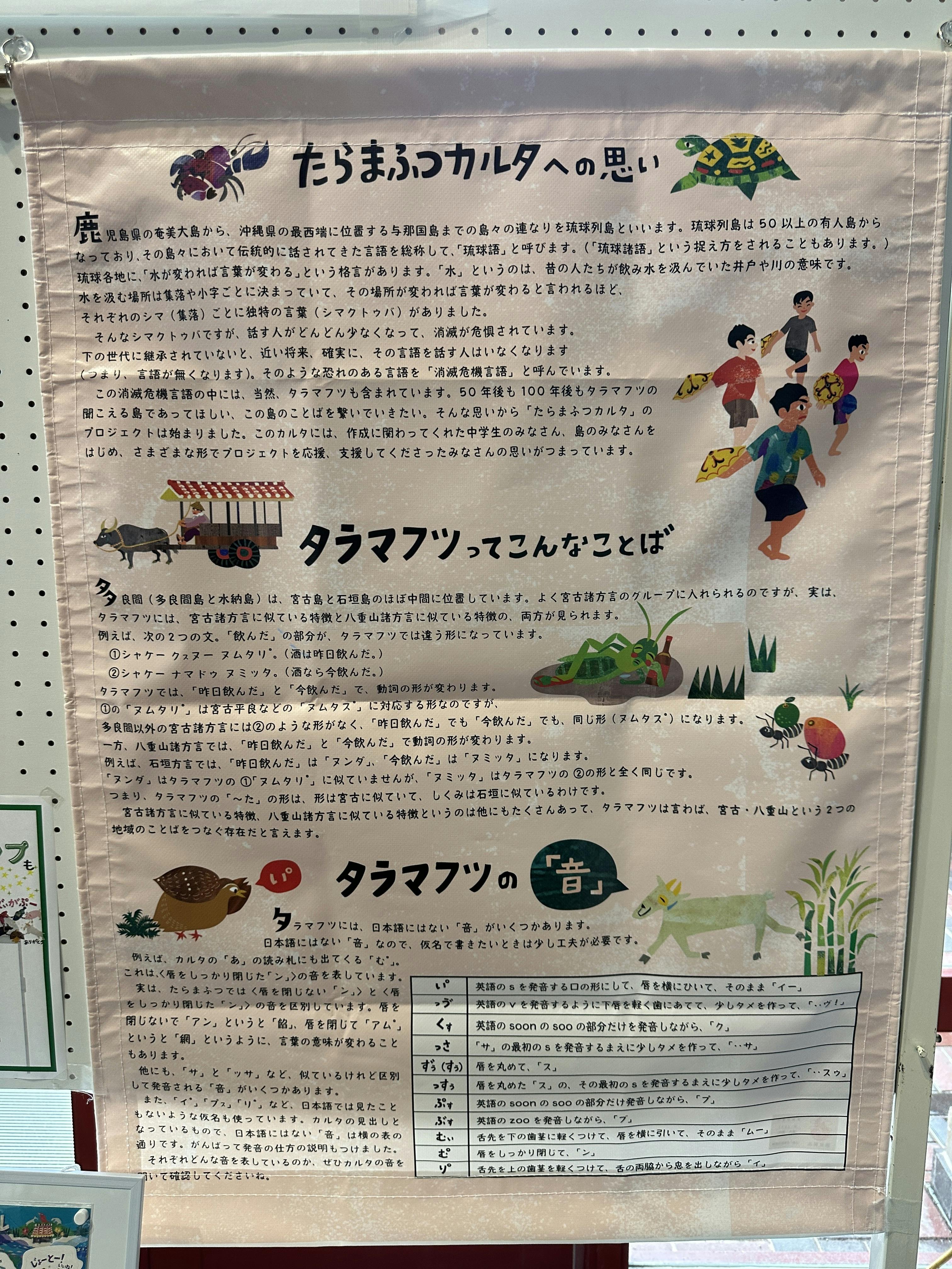 多良間島ブースでは、島の中学生とともに方言を集め、遊びの形にして残す取り組みとして、クラウドファンディングで制作した「たらまふつカルタ」を紹介・展示しました。