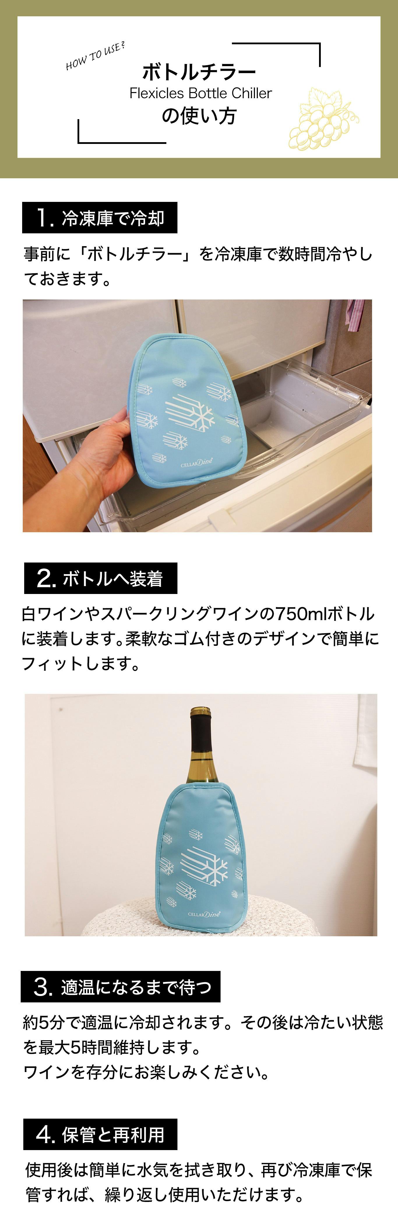 一方のボトルチラーは、やわらかなPVC素材で750mlボトルにやさしくフィット。