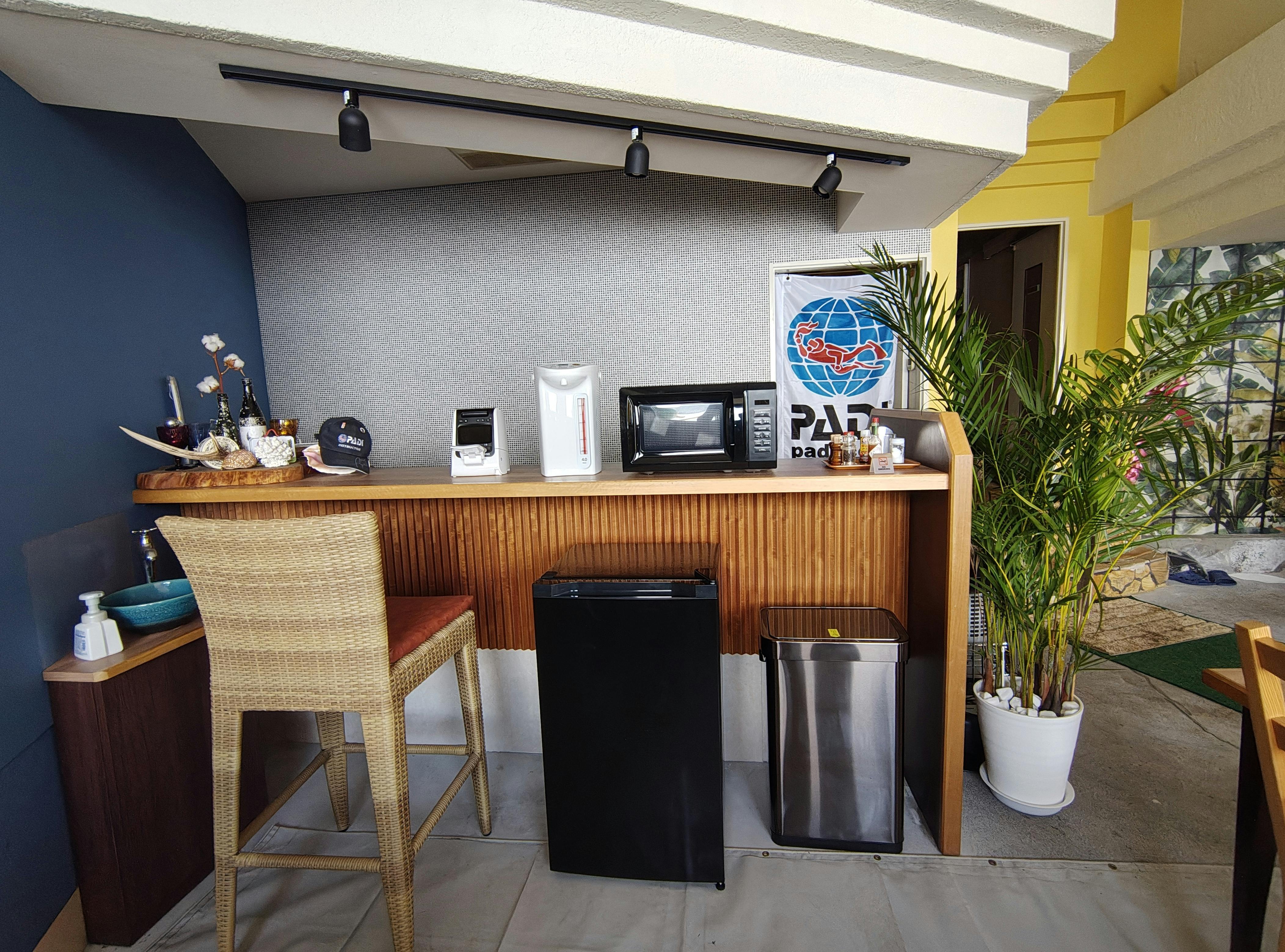 こちらの電子レンジ2台とポットは静岡の「マリンハウス メアー」さんから寄贈して頂きました