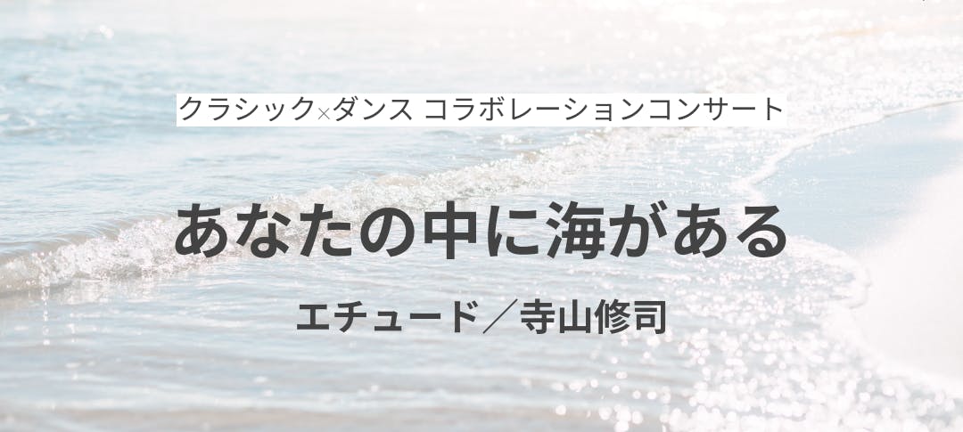 このコンサートでは、寺山修司をはじめとする〝海〟と〝愛〟に関する詩の数々をテーマに、トーク・演奏・ダンスの形をとって、私達自身の会釈や意見、アイデアを交換する様子を、赤裸々に公開いたします。