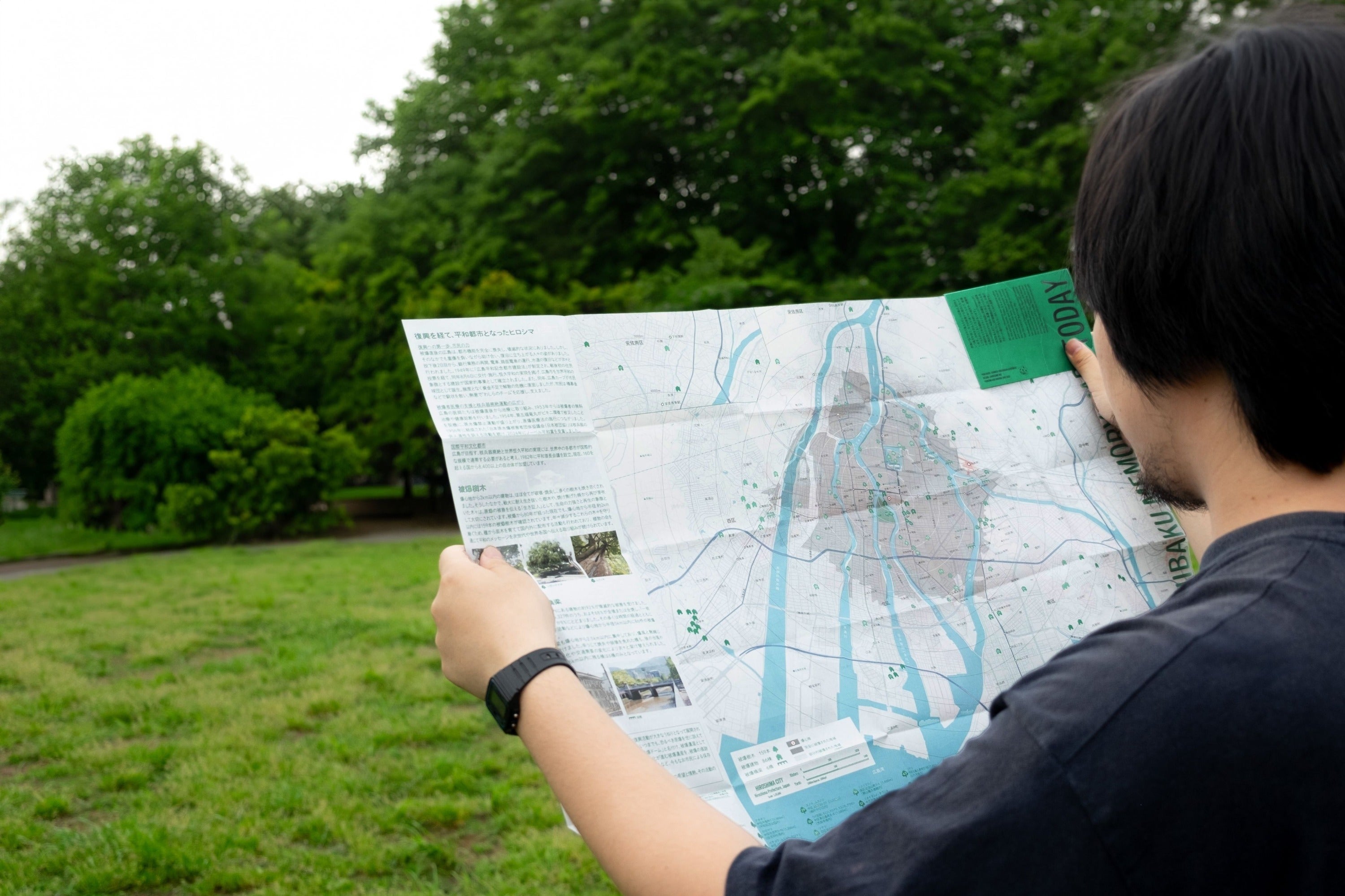 一方、観光客向けに作成された既存のパンフレットや地図を眺めてみると、被爆遺産の所在を記した現在の地図は見かけることがあるものの、原爆投下後の状況がわかる過去の地図はなく、過去と現在を繋ぎ、紹介したモノはありませんでした。