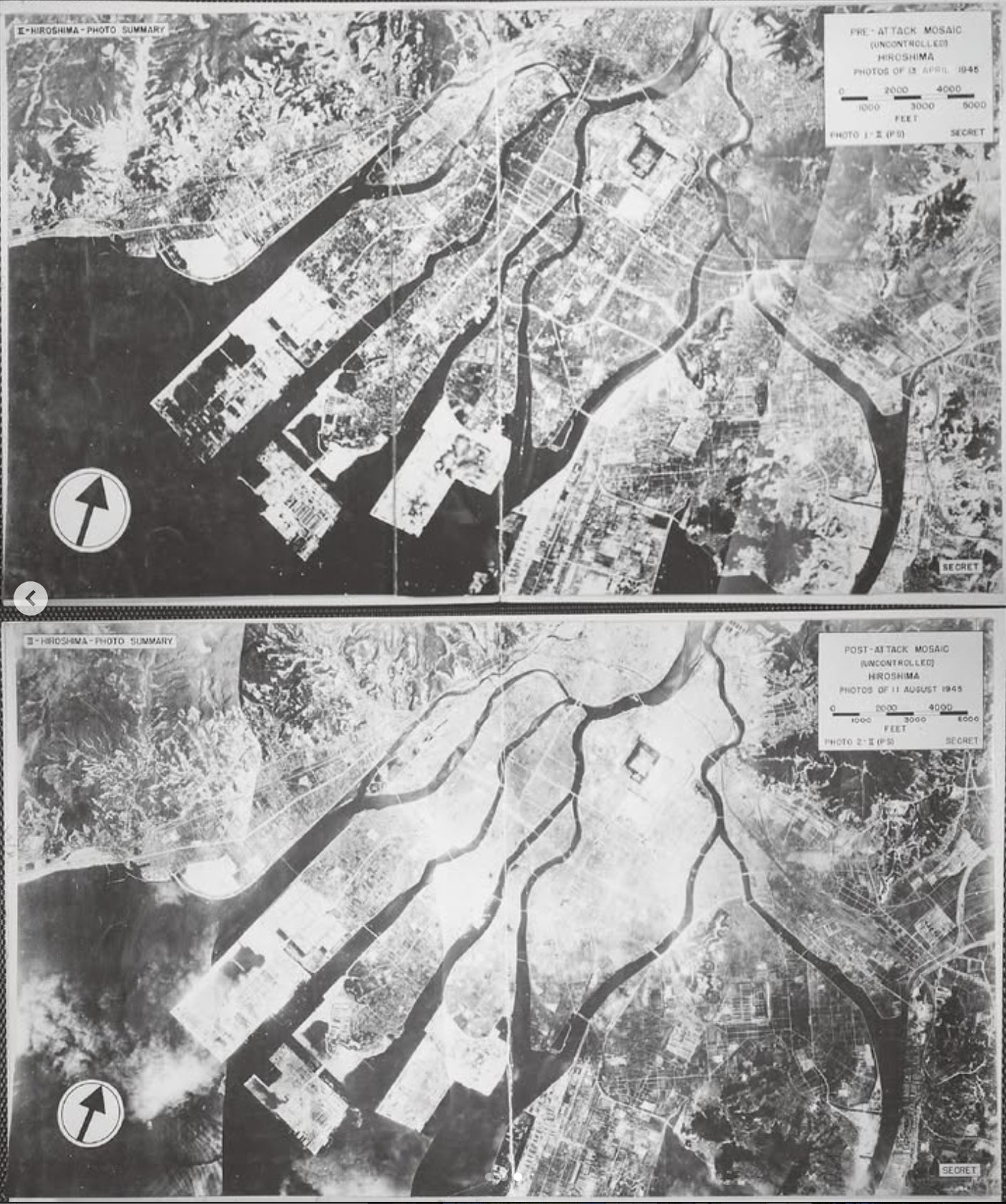 原爆投下前と投下後の広島の写真