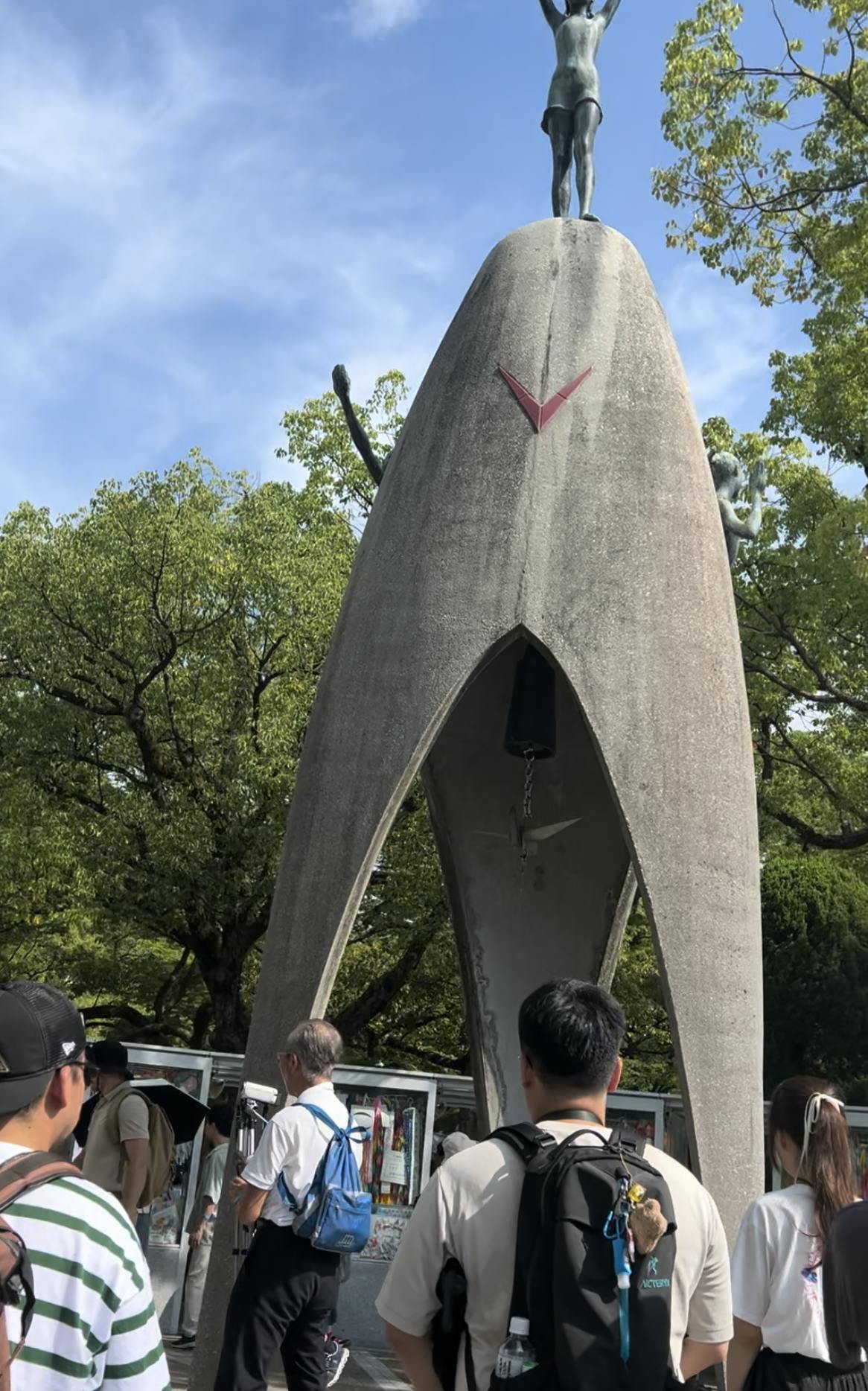 8月6日、平和記念式典が終わった9時過ぎ、キノコのメンバーである柳川と小平が、折り鶴を「原爆の子の像」に奉納してきました。