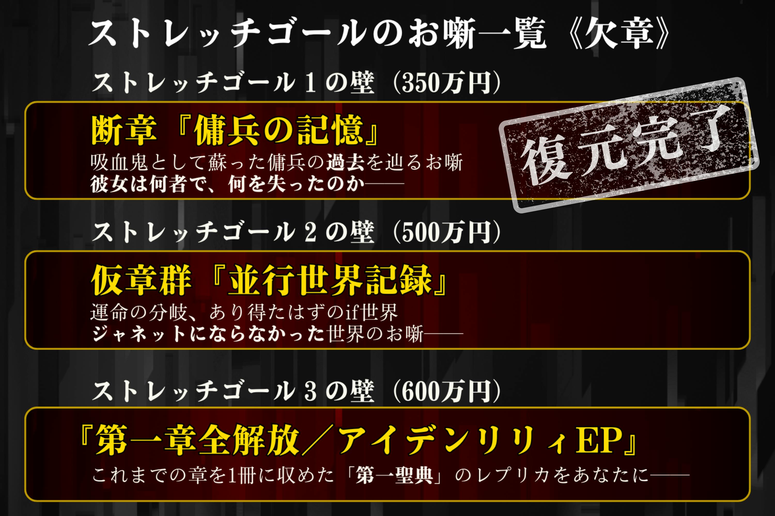 そして、次なる挑戦は、2ndストレッチゴール【500万円】仮章群《並行世界記録》の制作となります。