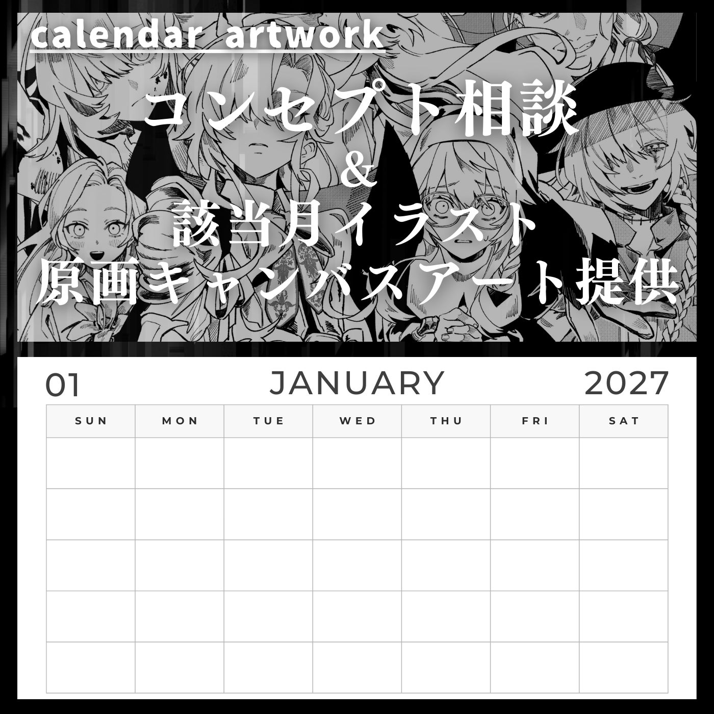 ◆【6万円/12枠】カレンダー原画キャンバス(月テーマ相談)2026年末販売予定の描き下ろしカレンダー(2027年版)のうち、1か月分のテーマを作者と相談のうえ決定。