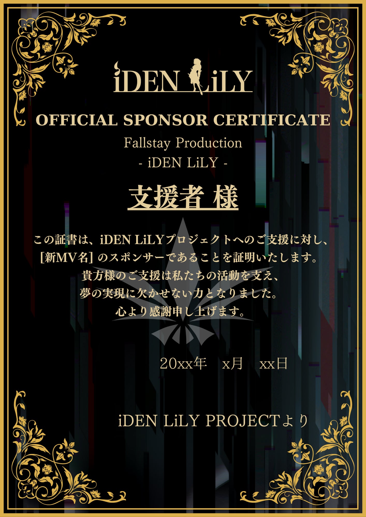 該当MVのスポンサー証明書として、支援者さまの名前を記載したデジタルスポンサー証明書を提供します。