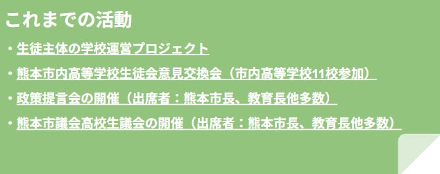 この事業を完遂することで、熊本の市民県民だけではなく熊本県内外・国内外の方々に、熊本県のKMSSをはじめとする多くの若者が、自身の住み暮らすまちをより良くしたいと考え行動に移しているということを知っていただくことで、県内はもちろんのこと県外国外の方々にも、熊本へ興味関心を持っていただくきっかけとなり、熊本が「選ばれる都市」となることを切に願っております。