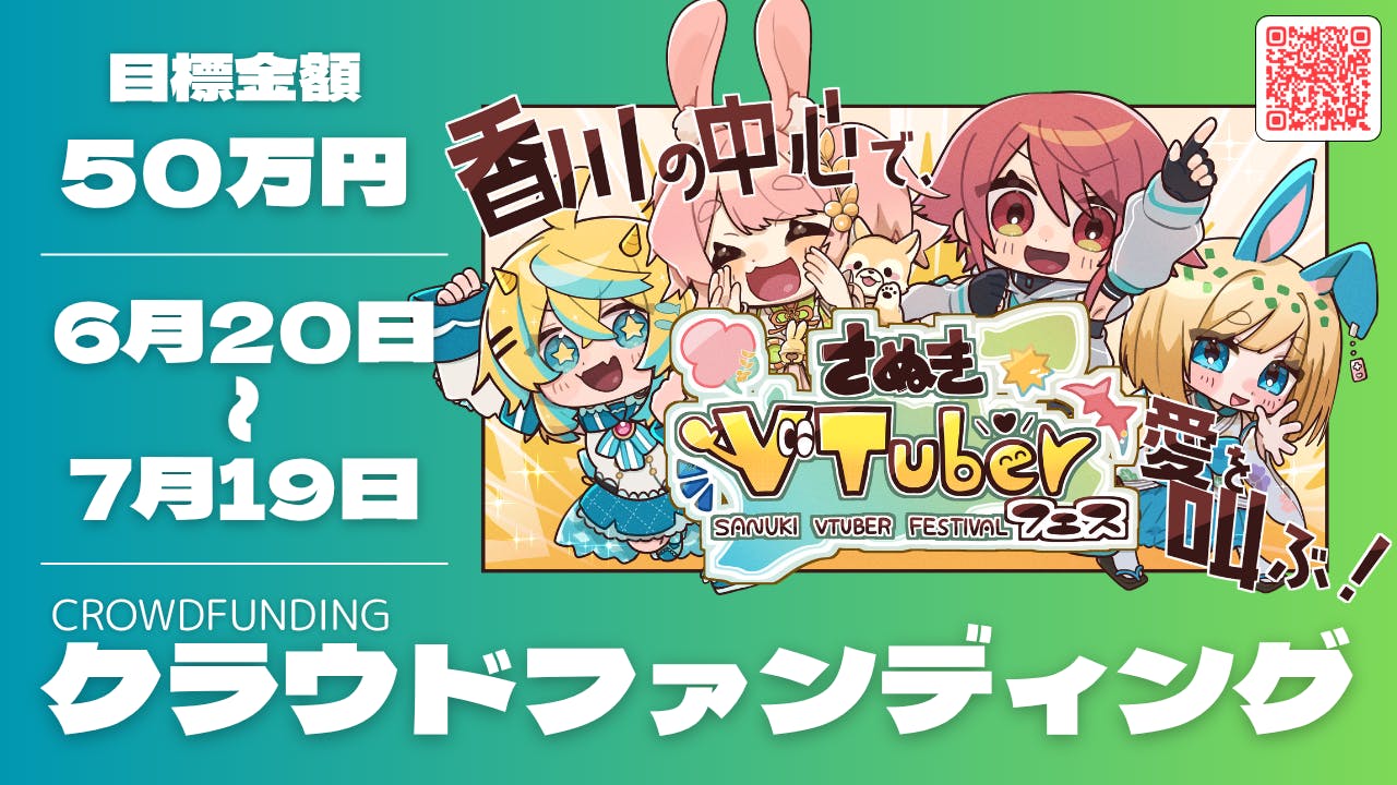 2025/07/21 12:00達成報告!そして新たなスタートを!7月19日の夜22時~24時30分頃、クラファン最終日の見守り配信をアンバサダー4名で行いました。驚いたことに、早々に150%を達成!その後175%も達成!そして、「決済間に合わなかったー!」という断末魔コメントに笑いながら、無事187%達成でクラファンが終了しました。応援してくださった方の「記念撮影を」というご希望もいただき、みんなニコニコでスクリーンショットタイムを作りまして、SNSに投稿してくださった中の一枚をお借りしました。配信中にはみんながそれぞれコメントをしてくれているので、ぜひそちらもご確認ください!【さぬきVTuberフェス】告知配信Vol.5「最終日見守り配信」最後の最後まで一緒に頑張ってくださった皆様本当にありがとうございました!また、今回の配信に合わせて、八夜水ちゃんのイラストを活用して、さなかさなかちゃんがデザインしてくれたポスターを公開しました(^^)/配信中には、素敵なポスターのデザインについても思いを語ってくれています。ぜひご視聴ください。さて、ここから先のお話!【ポスターについて】既にポスターを貼ってくださる場所が名乗りを上げてくださっていらっしゃいます。ポスターに関しても折角なら何か企画が出来たらと思っております。そちらの企画もお楽しみに\( *´ω`* )/今後も「ポスターうちでも貼ったるで!」「貼れるか聞いてみるで!」という方を、県内外問わず広く募集しております。お気軽にご連絡ください(*'▽')ノ~【返礼品(リターン)について】有難いことにみんなの活動がそれぞれに忙しくなり始めておりまして、支援者様限定の「お礼動画」は8月に入ってからお送りする流れとなります。また、缶バッジやクリアファイルなどデザインが必要なものに関しまして、なるべくアンバサダーみんなで気持ちを込めて作りたいと考えています。今後、各自の配信などでデザインを取り上げたものも出てくると思うので、お楽しみに! 〇アンバサダーのYouTubeチャンネルはこちら!(敬称略・五十音順) ・饂飩之ミコ(うどんのみこ) ・さなかさかな ・瀬戸兎ゆめ(せとうさゆめ) ・八夜水(やつよすい)【こんぴらおさんぽツアーについて】今回、株式会社地方創生さまのご協力をいただきまして、こんぴらで「地域を盛り上げよう!」と面白い事業をしている事業者さんを訪ね歩きながらこんぴらを満喫するツアーを実施します\( *´ω`* )/撮影したものは、瀬戸兎のチャンネルで公開し、当日も会場で流す予定です。そちらもお楽しみにっ!クラウドファンディングは終わりましたが、10月19日に向けてまだまだ企画は盛りだくさんっ!地域や応援者さんたちをどんどん巻き込む企画を考えているので、引き続き巻き込まれていただく準備をお願いします!⁽⁽٩(◍˃ᗜ˂◍)۶⁾⁾ もっと見る