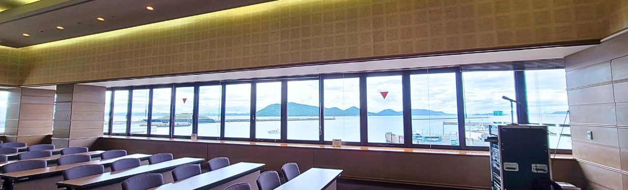 今回の会場となるレクザムホール大会議室では、なんと穏やかな瀬戸内の海を一望することができます。