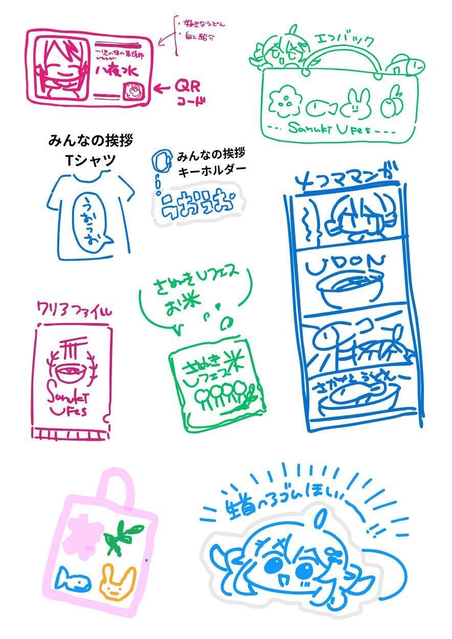 画像は、「告知配信Vol.2 会場下見と琴平!そしてグッズ!」配信にて、視聴者さんたちとアンバサダーで一緒に考えたグッズの一部です。