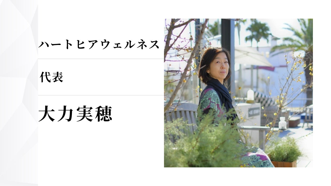 はじめまして。ハートヒアウェルネス代表、そしてマインドヘルスコンサルタントの大力実穂(ダイリキミホ)です。