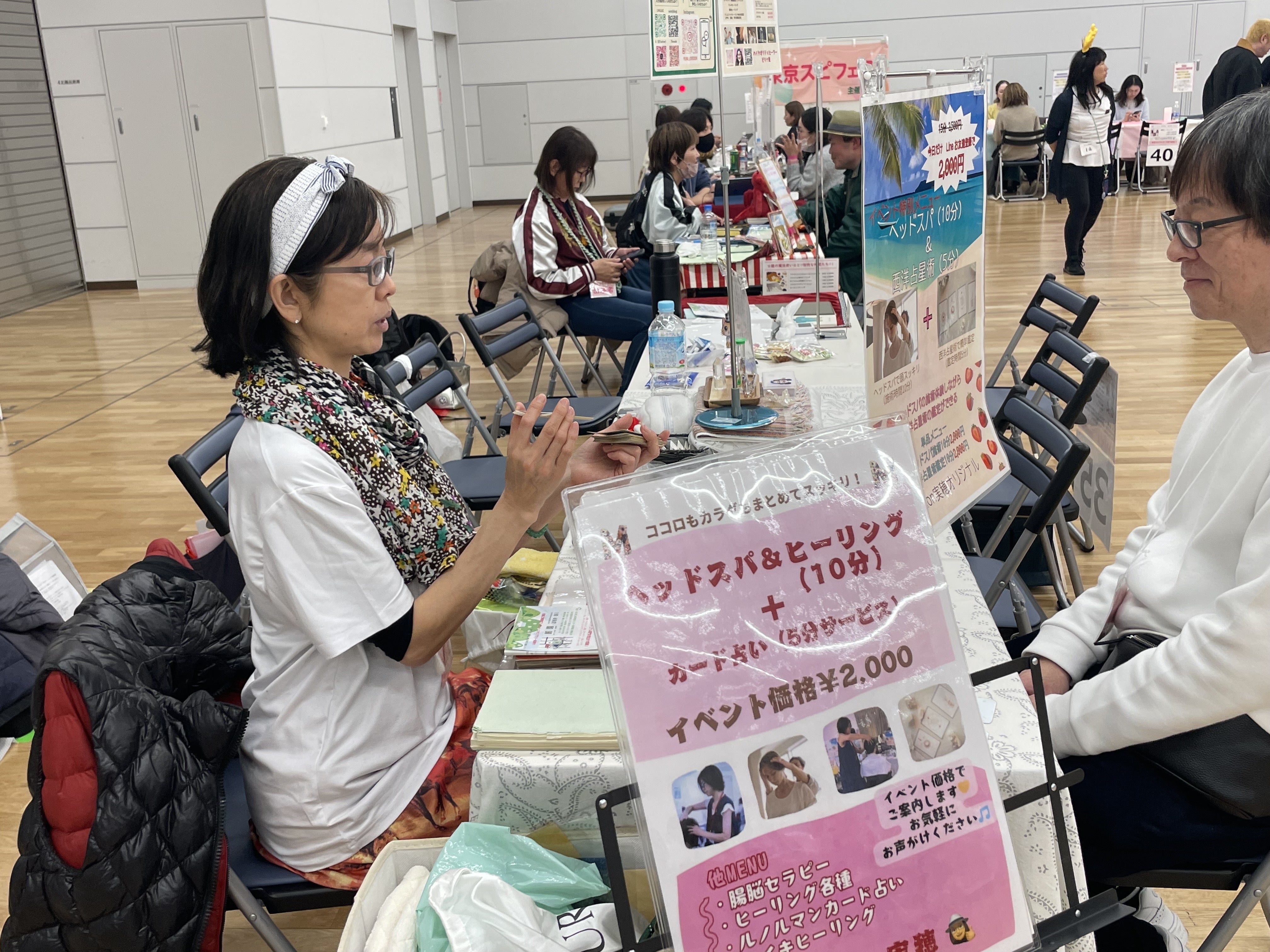 今は、東京で開催されるスピリチュアルイベント「スピフェス」などに出店し、多くの方と直接お会いしながら、心と体の健康に関する気づきや癒しをお届けしています。