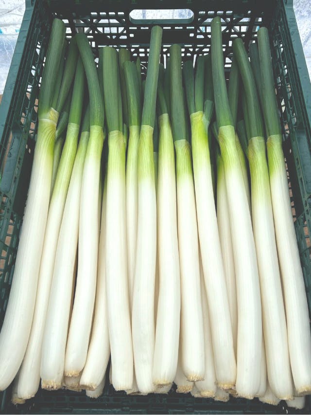 長ネギは霜が降り始める11月からが旬です。寒さで甘みをじっくり蓄えながら育った長ネギはこの時期のお鍋には欠かせません。ぜひご賞味ください。