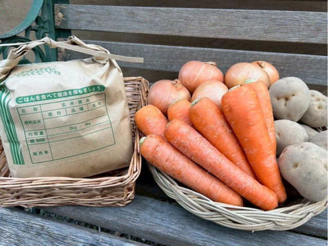 カレー野菜に加え、さくら市産の自慢のお米をセットにしてお届けいたします。