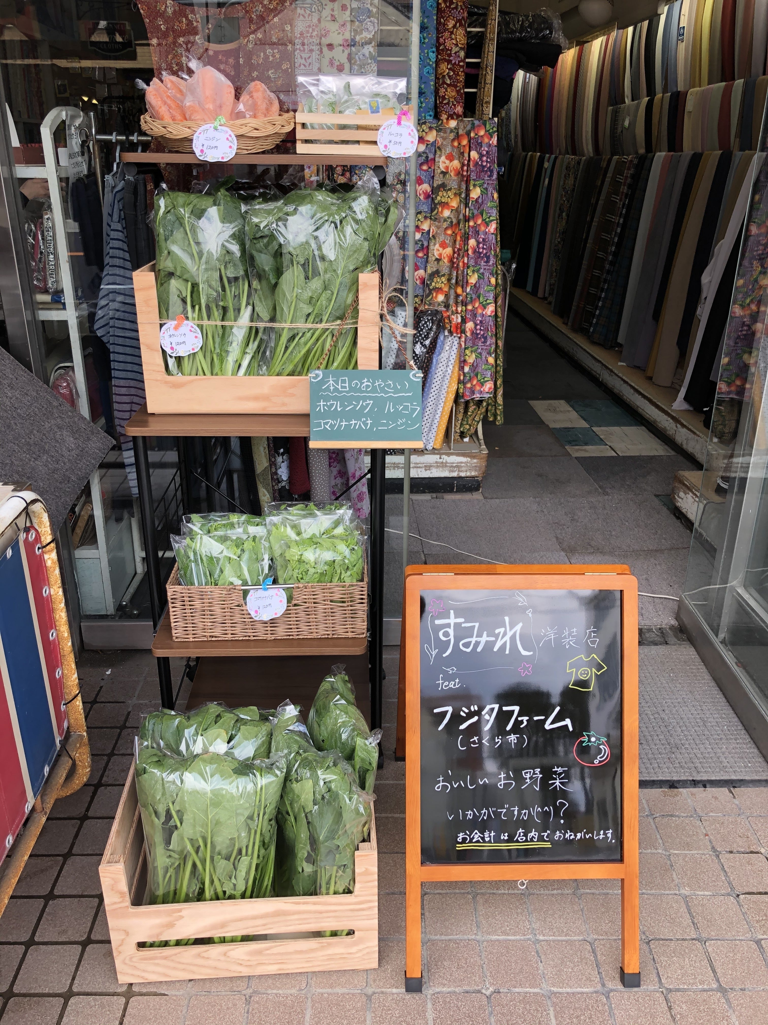 当初(2020年)は20aの農地で多品目野菜の栽培から始まりました。友人家族が営むお店をお借りしての軒先販売、直売所への出荷がメインでした。